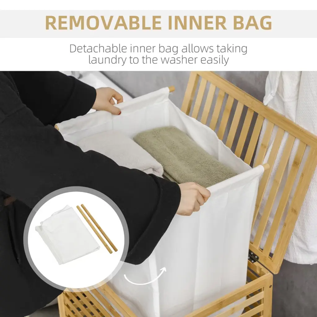 Tame laundry chaos with our 53L bamboo laundry hamper, blending natural elegance with practical organization. The removable non-woven inner bag lets you transport clothes to the washer effortlessly, while the stylish bamboo lid keeps messes out of sight. Compact yet spacious (19.75"L x 14.25"W), this eco-friendly hamper fits snugly in tight spaces and supports up to 33 lbs—perfect for small apartments or eco-conscious homes.