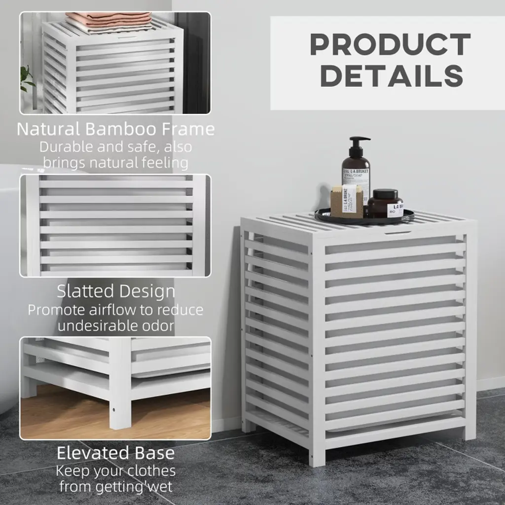 Jansno Bamboo Laundry Hamper With Lid, Laundry Basket With Removable Liner Bag - White