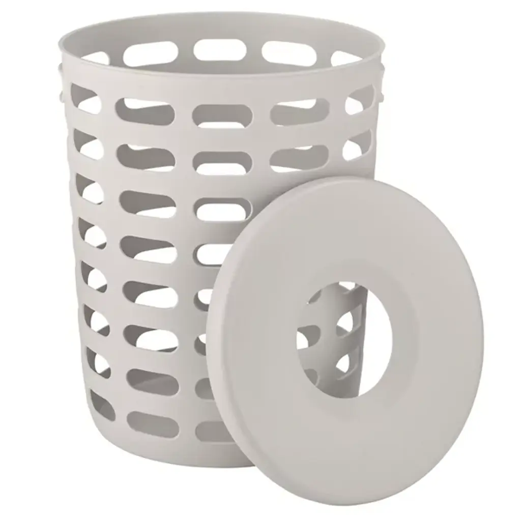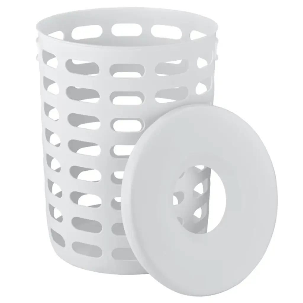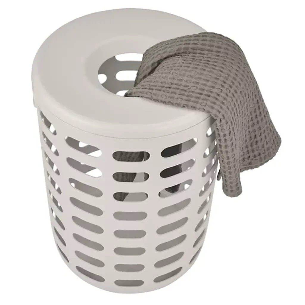 The Korie Laundry Basket from Blomus is a clean-surfaced, contemporary cylinder made of strong plastic, featuring oval cutouts around the sides to facilitate movement. The central hole in the removable top offers retention and concealment of its contents, making it easy to make a game out of tossing in socks and other items.