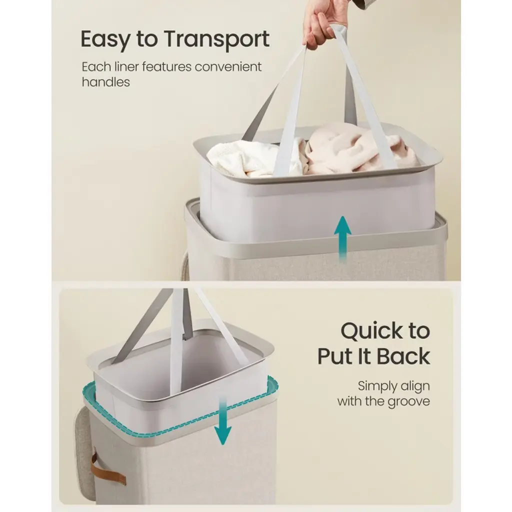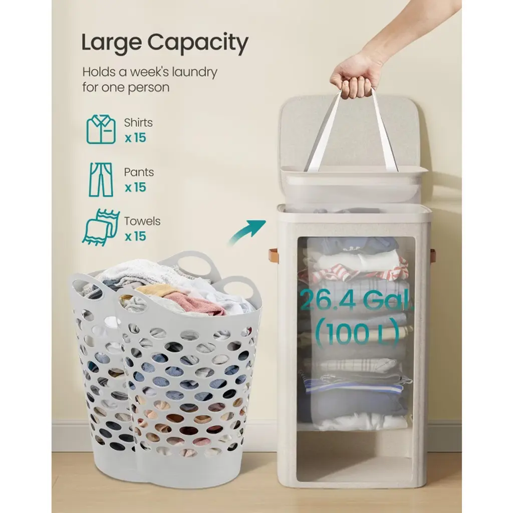 Laundry Basket, Laundry Hamper, With Lid And Handles, Removable Liner, Easy Assembly, Beige