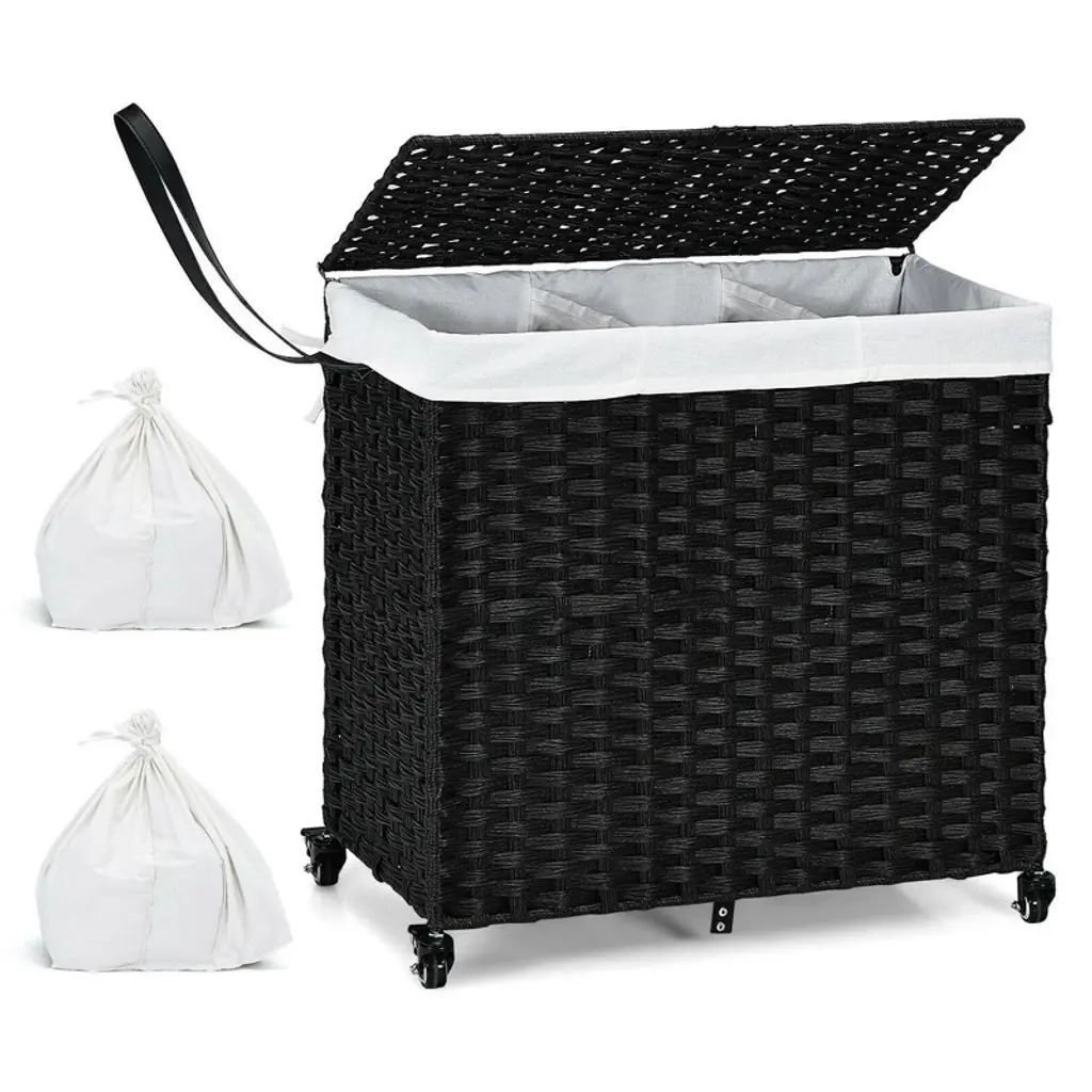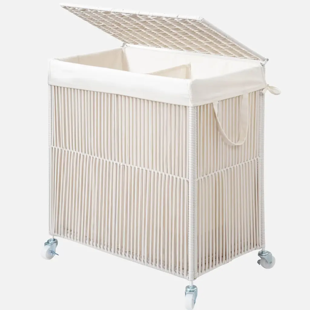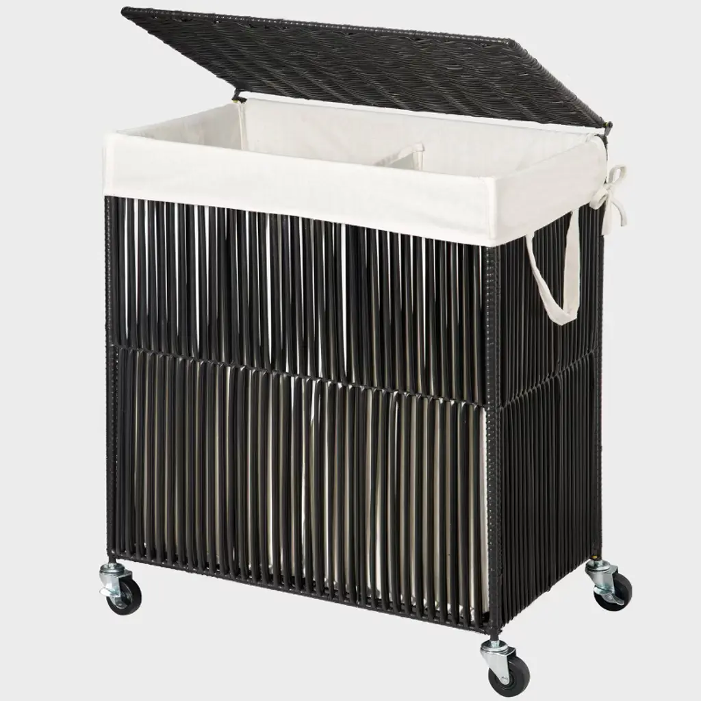 This classic PE rattan laundry hamper with lid combines style and function, available in two sizes and colors to suit various home needs. Designed with a durable powder-coated steel frame and soft canvas liners, it blends seamlessly into bathrooms, bedrooms, or laundry rooms. Featuring removable bags and optional wheels for larger models, it provides smart organization and easy mobility. Whether you choose the 100L with a single bag or the spacious 160L with two compartments, this hamper offers an elegant solution to tidy up laundry while complementing your home décor.Features:Specifications (100L Version):Specifications (160L Version):