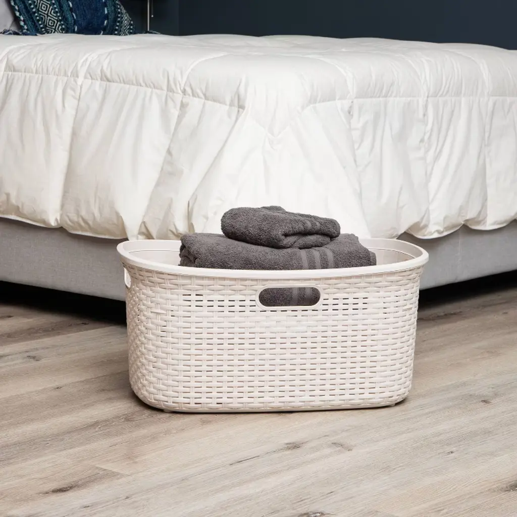 Mind Reader 2Pk 40l Premium Wicker Look Laundry Basket Ivory