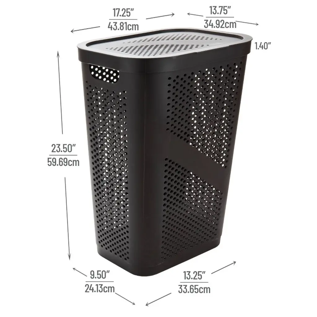 Versatile Laundry Hamper with Premium Wicker DesignTackle your clothes clutter with this stylish and durable laundry hamper. With the capacity to securely hold up to 40 liters (15kg/33lb) of clothes or linens, this practical hamper adds a touch of elegance to your space. Its slender, tapered design allows it to fit comfortably in snug spots, including beside your washing machine, in the bathroom, or inside a closet.Crafted with a premium wicker design that facilitates ventilation. It comes with an easy-to-attach lid that conceals your laundry neatly. Lightweight and equipped with built-in handles, it's a breeze to transport. Ideal for hauling clothes to and from the laundry room, visiting the laundromat, or for students taking laundry home on the weekend.This versatile hamper is an excellent solution for storing seasonal clothing, maximizing your closet space. It can also be used to store toys, sports equipment, crafting supplies, or shoes.