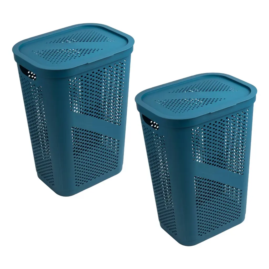 Versatile, Large Laundry Hampers - Stylish & DurableKeep your home tidy with this set of two large laundry hampers. Not just for laundry, these spacious bins can handle a variety of storage needs. Beyond holding clothes, they can store plush toys, shoes, sweaters, blankets, linens, and even serve as garage storage for sports equipment or gardening tools.With it's hinged lid, this hamper ensures your laundry stays neat and out of sight, contributing to a clean and orderly bedroom or bathroom. This laundry hamper maximizes storage in minimal spaces and blends seamlessly into any home aesthetic, thanks to it's open grid design. It fits perfectly next to the washer and dryer, in a small bathroom, or tucked into a closet.This hamper is ready for use right out of the box, with the lid easily snapping into place. The durable construction holds up to 15kg/33lb of laundry, towels, or linens. For the best stability, avoid overfilling. Cleaning the lightweight, durable plastic hamper is a breeze—just wipe using a damp cloth or sponge.Enjoy a tidier, clutter-free space with this versatile laundry hamper!