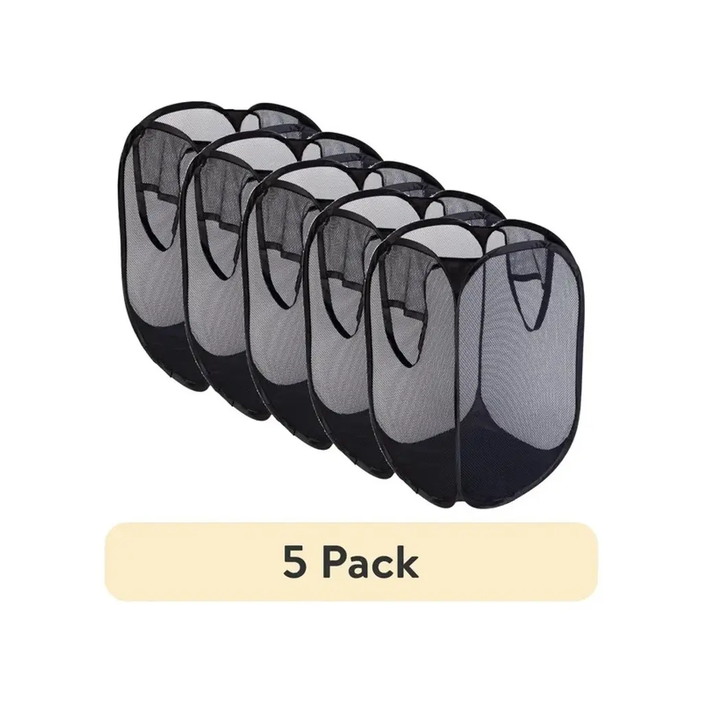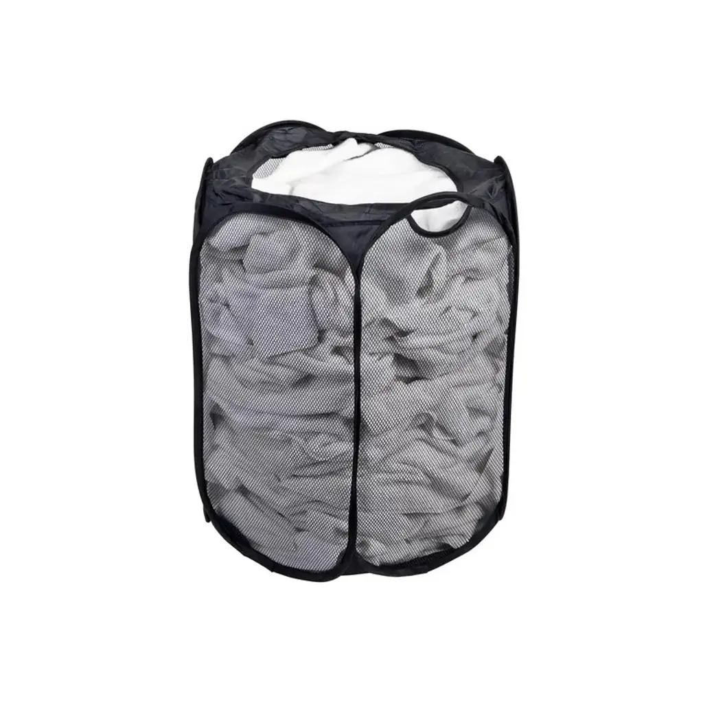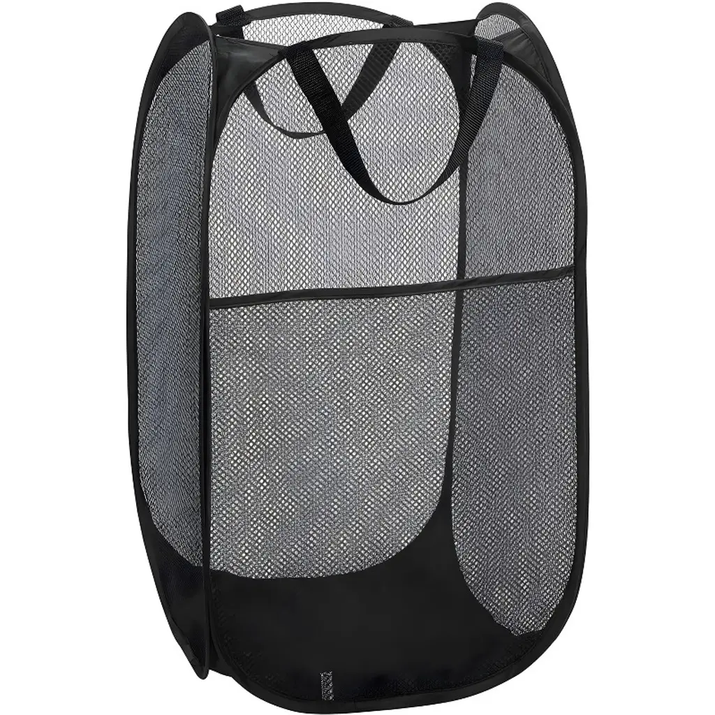 Racxily (2 Pack) Polyester Mesh Pop Up Hamper, Foldable Laundry Basket For Home, Dorm, Travel & Storage, Black