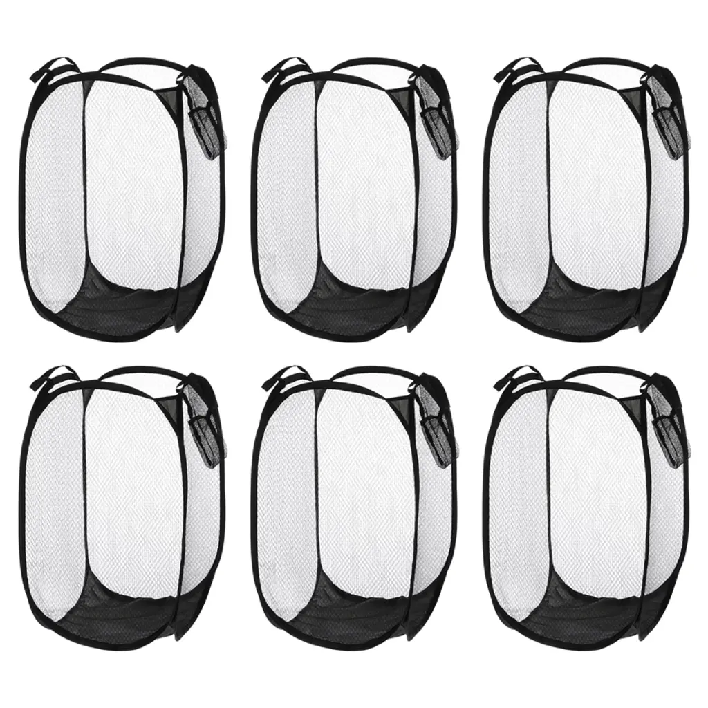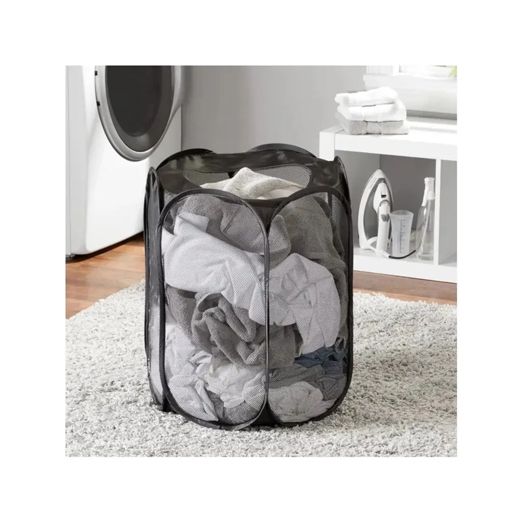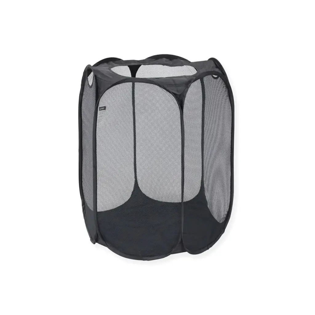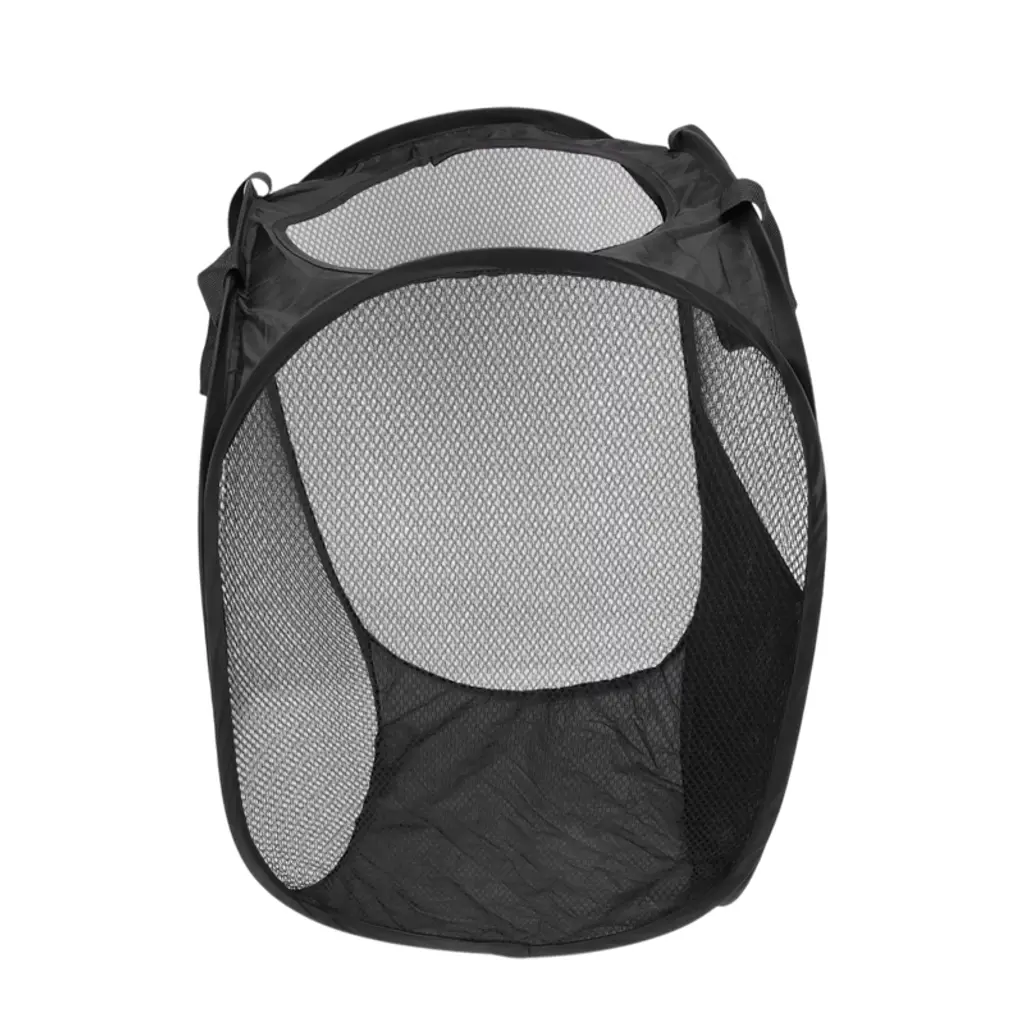 Racxily (2 Pack) Polyester Mesh Pop Up Hamper, Foldable Laundry Basket For Home, Dorm, Travel & Storage, Black