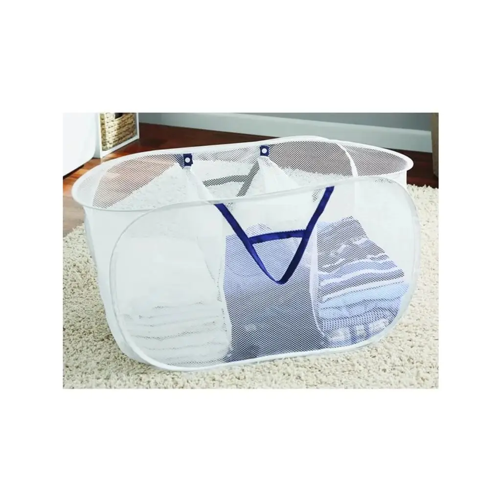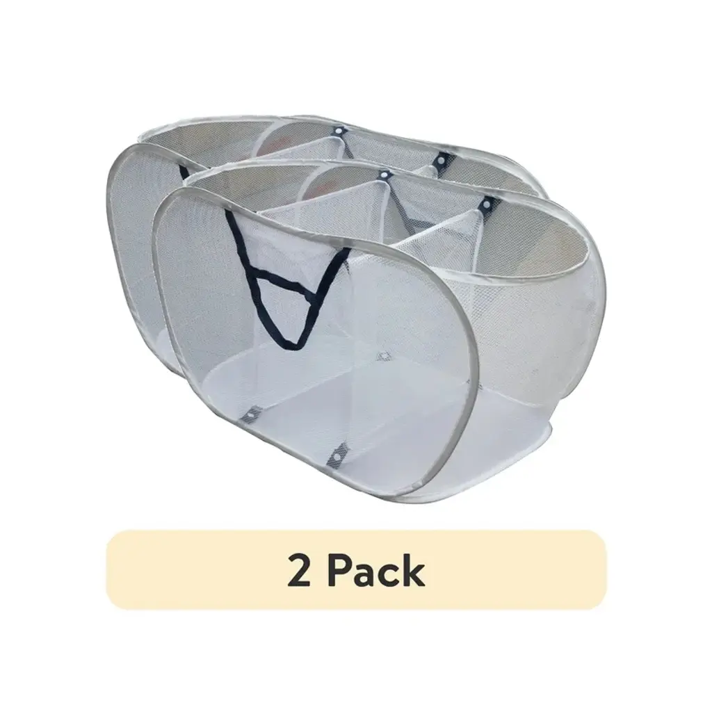 Racxily (2 Pack) Polyester Mesh Pop Up Hamper, Foldable Laundry Basket For Home, Dorm, Travel & Storage, White