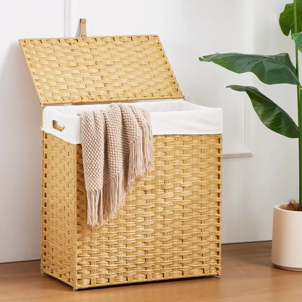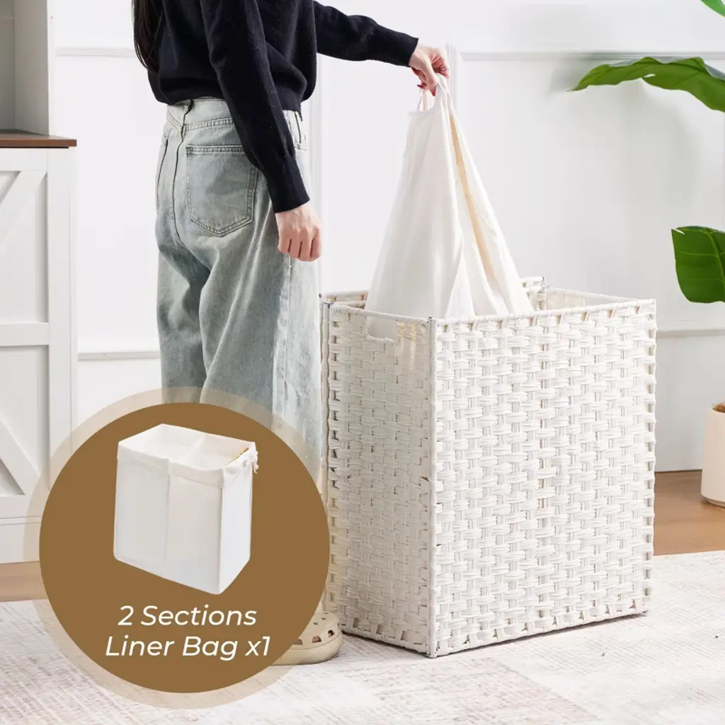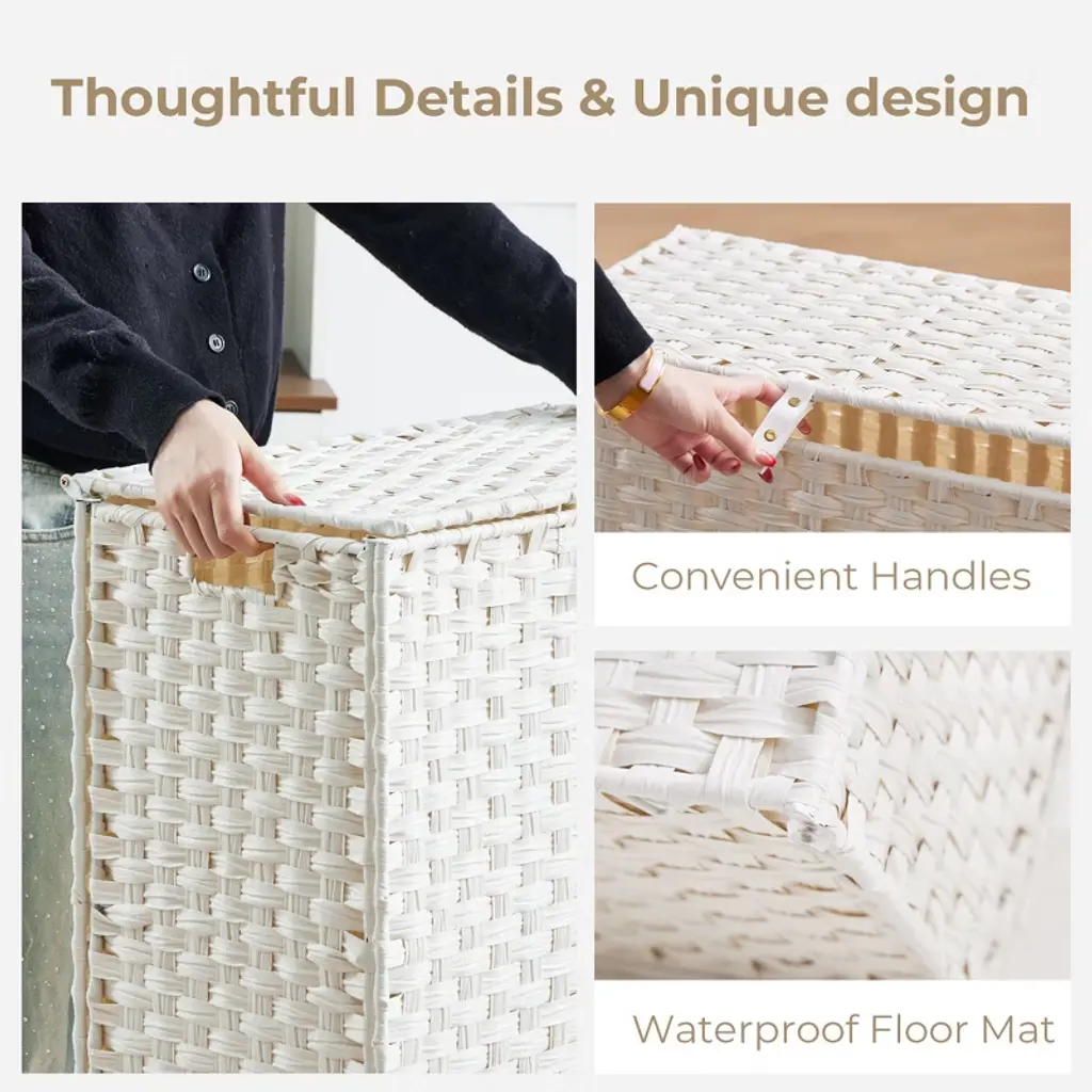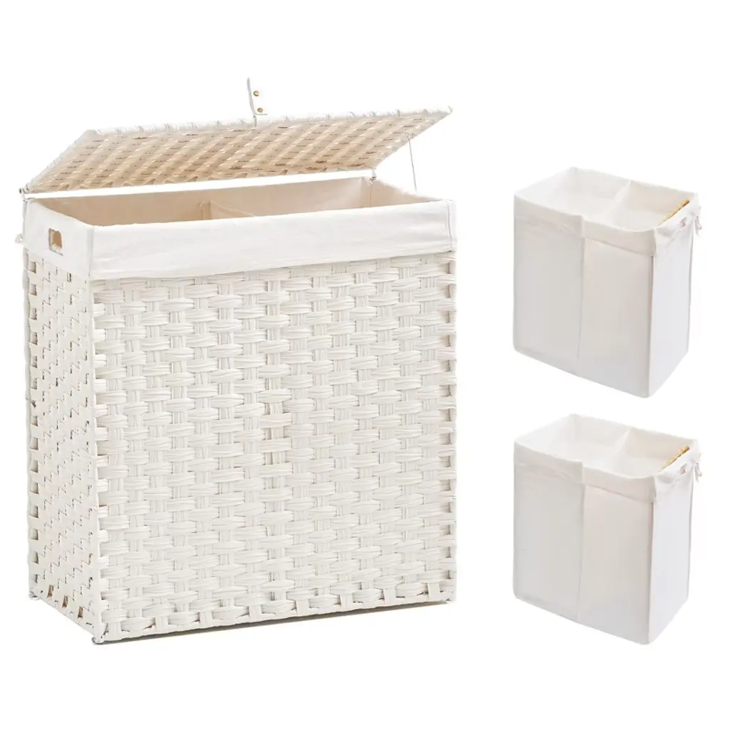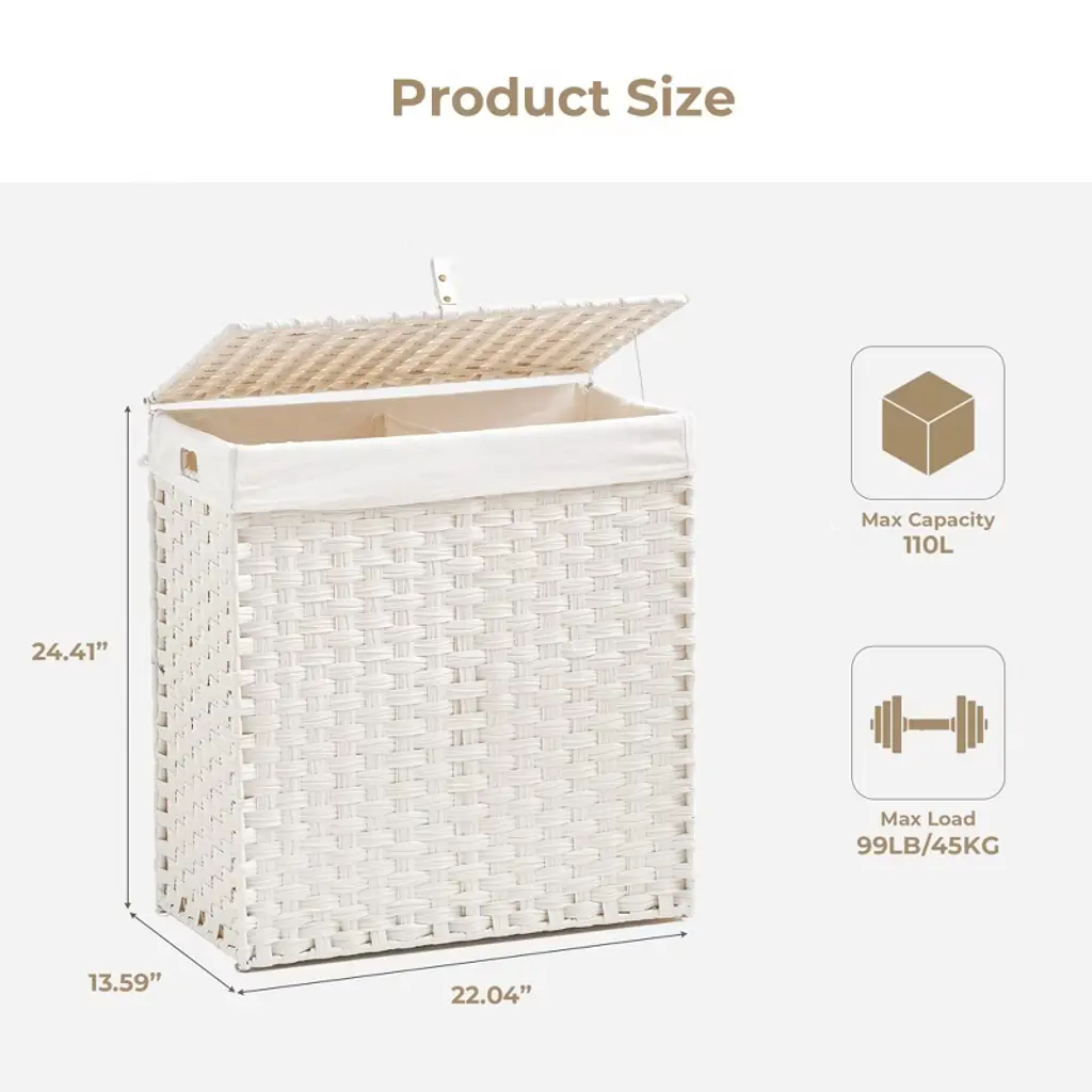 Rattan Design 110l Laundry Hamper With Double - Section Liner And Large Capacity, Lid - Included, Household Clothes Storage Essential