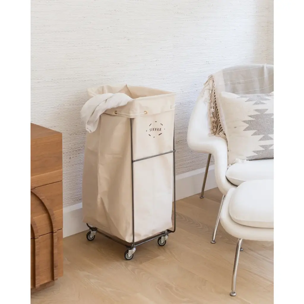 Their industrial non-collapsible bag caddies are made with a spring steel frame that is sure to never let you down. The vertical design saves space on plant floors and makes them ideal for residential laundry rooms and home use. Model #233 comes standard with a 10 oz. natural canvas bag and a spring steel frame on 2 non-marking thermal plastic rubber (TPR) stem casters.