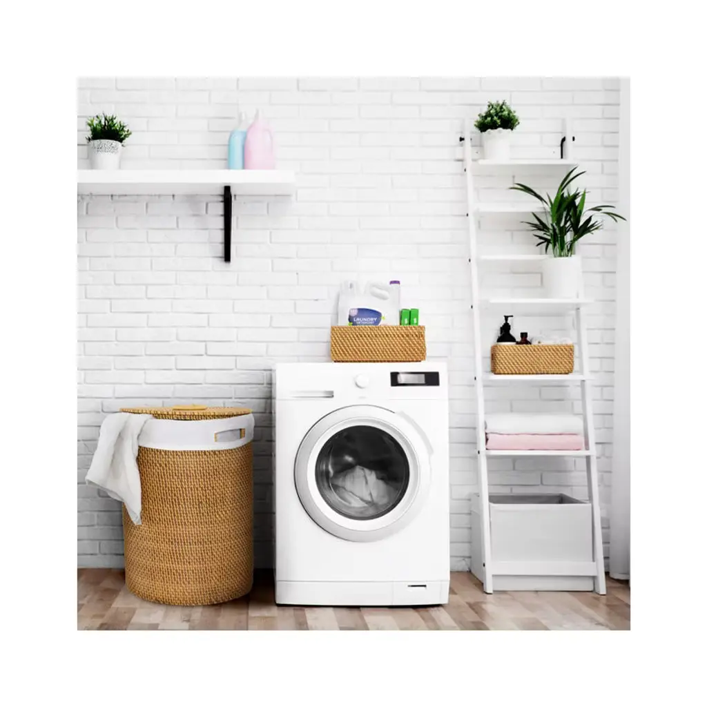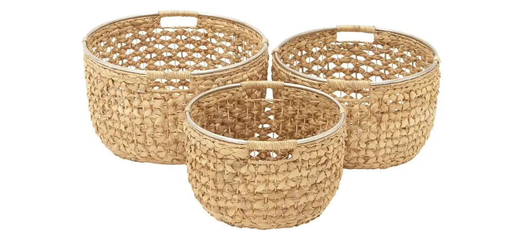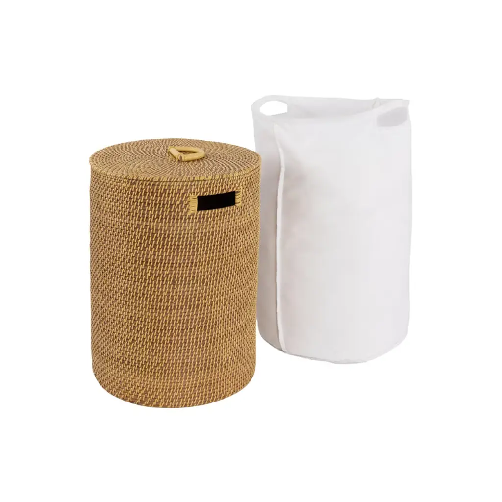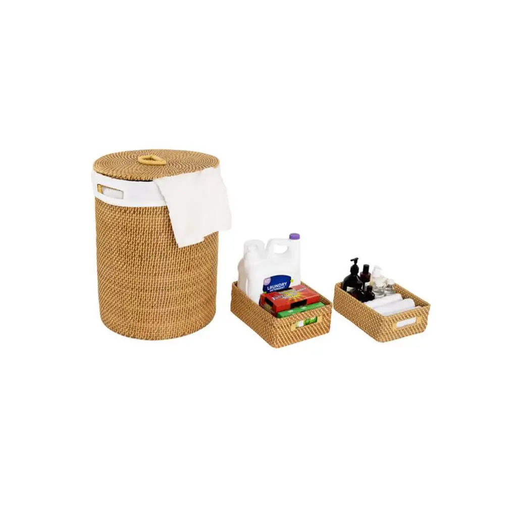 Seville Classics 3-Piece Rattan Hamper and Basket Set is a stylish and practical way to store laundry. The handwoven set includes a rounded lidded hamper and two rectangular baskets. The set is made from naturally grown handwoven rattan with PE ribbons. Each set is unique and handwoven by local artisans, so there may be slight variations in size and imperfections. The round hamper features a thick, removable, and machine washable 100% Polyester canvas liner, making it easy to transport your laundry. The hamper features two cut-out handles for easy carrying. No assembly required.