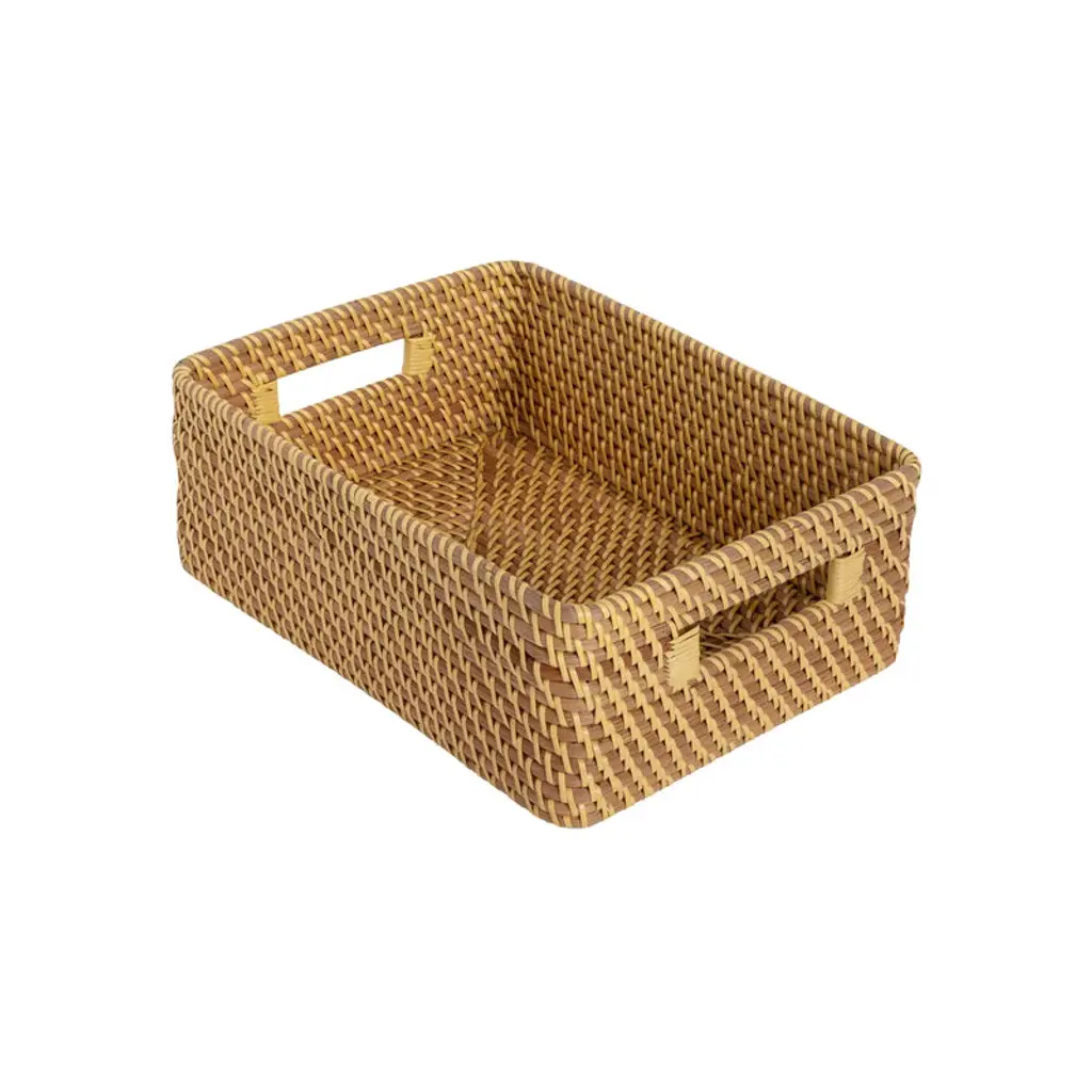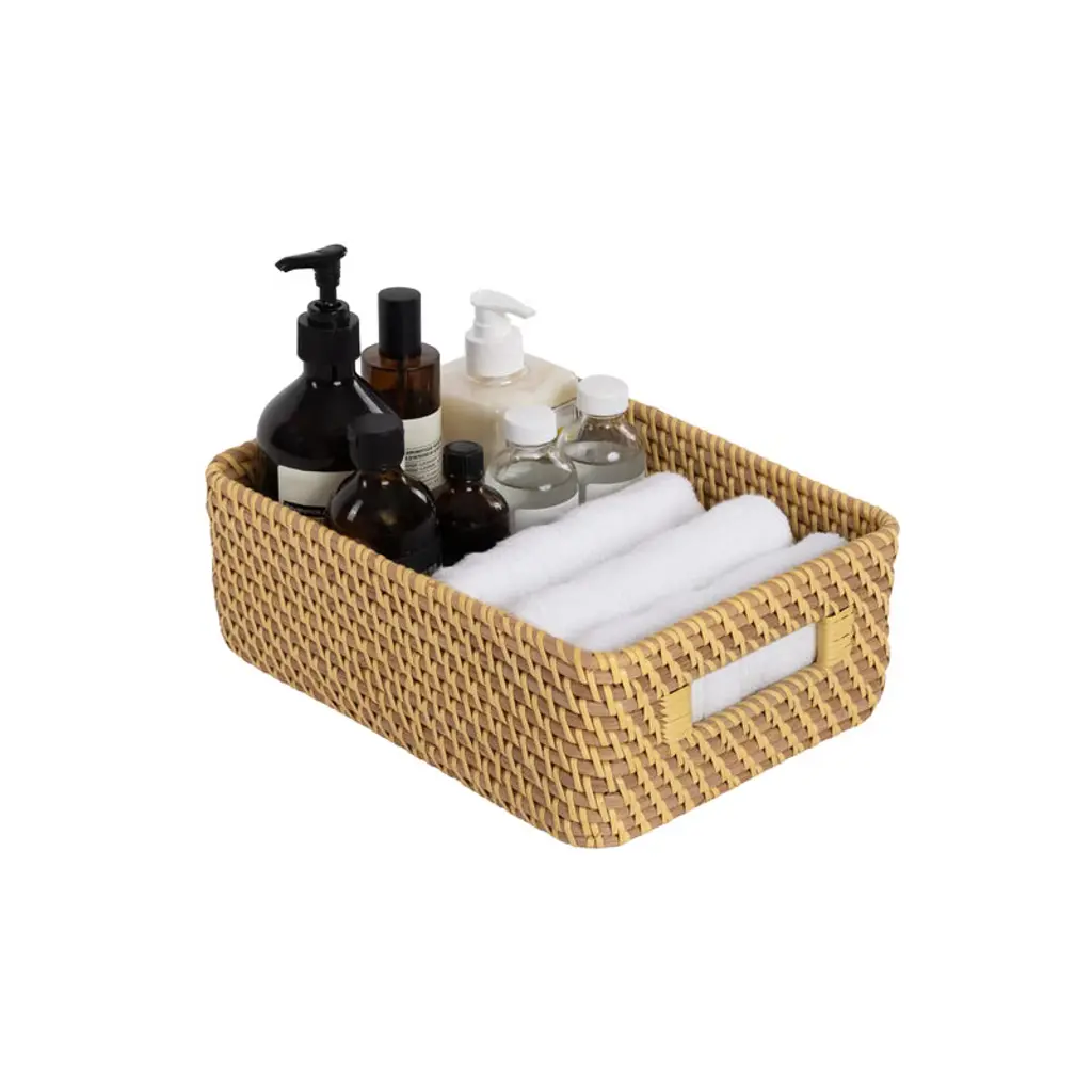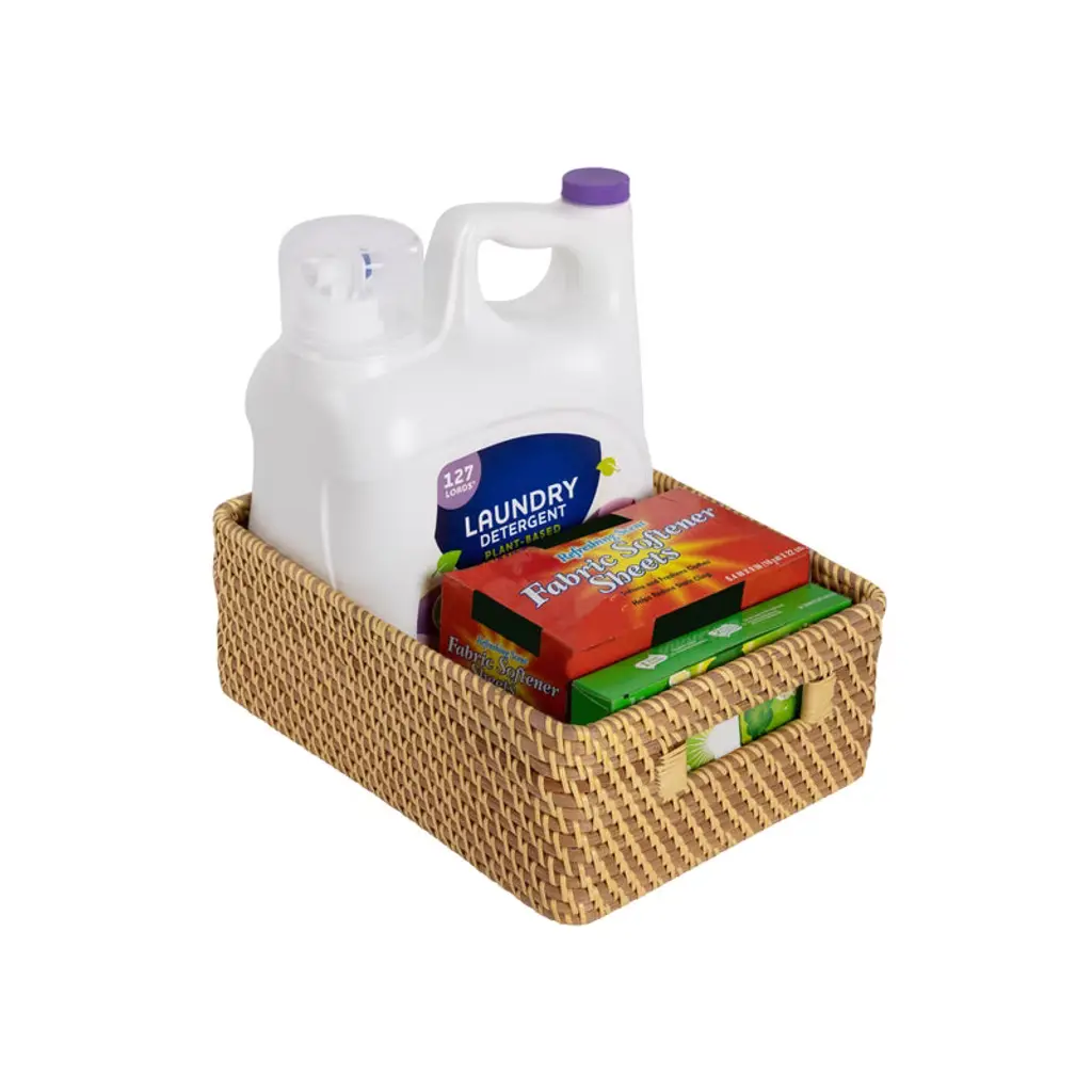 Seville Classics 3-Piece Rattan Hamper and Basket Set is a stylish and practical way to store laundry. The handwoven set includes a rounded lidded hamper and two rectangular baskets. The set is made from naturally grown handwoven rattan with PE ribbons. Each set is unique and handwoven by local artisans, so there may be slight variations in size and imperfections. The round hamper features a thick, removable, and machine washable 100% Polyester canvas liner, making it easy to transport your laundry. The hamper features two cut-out handles for easy carrying. No assembly required.