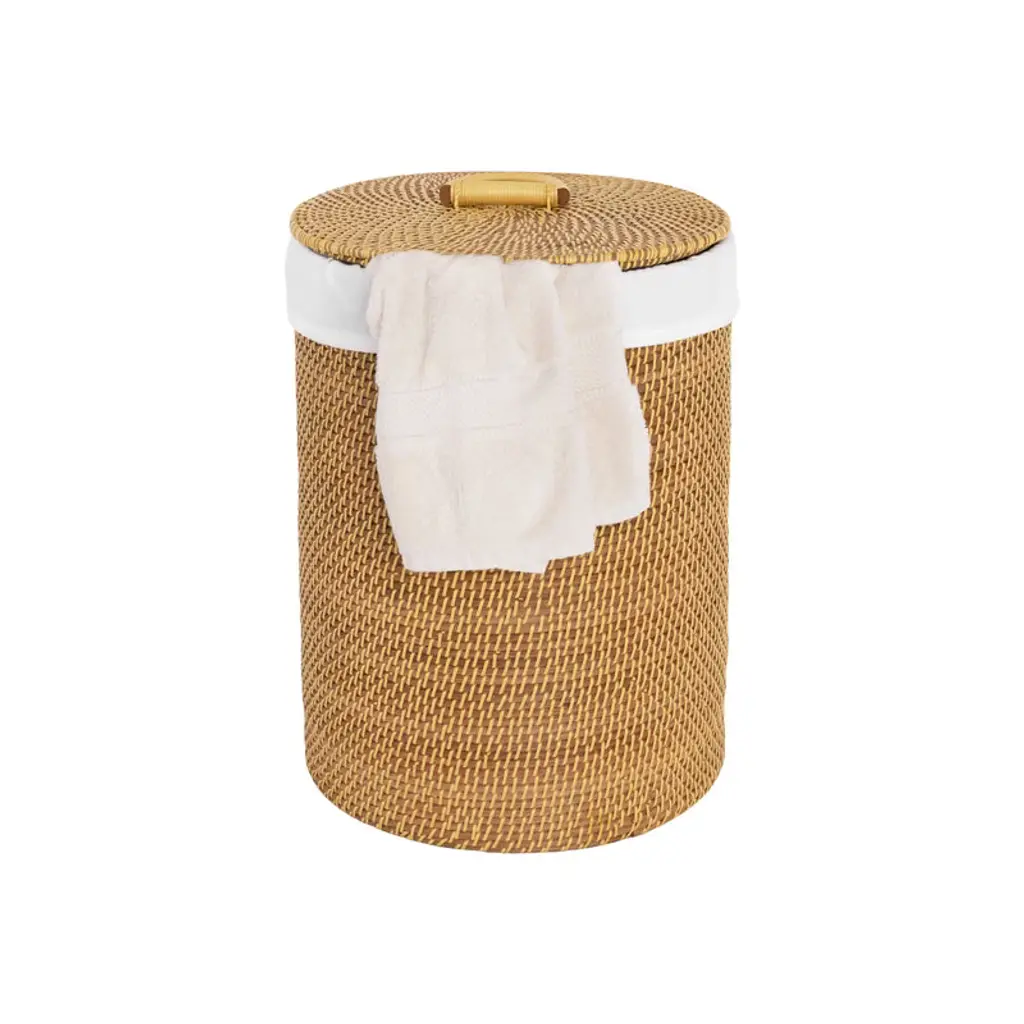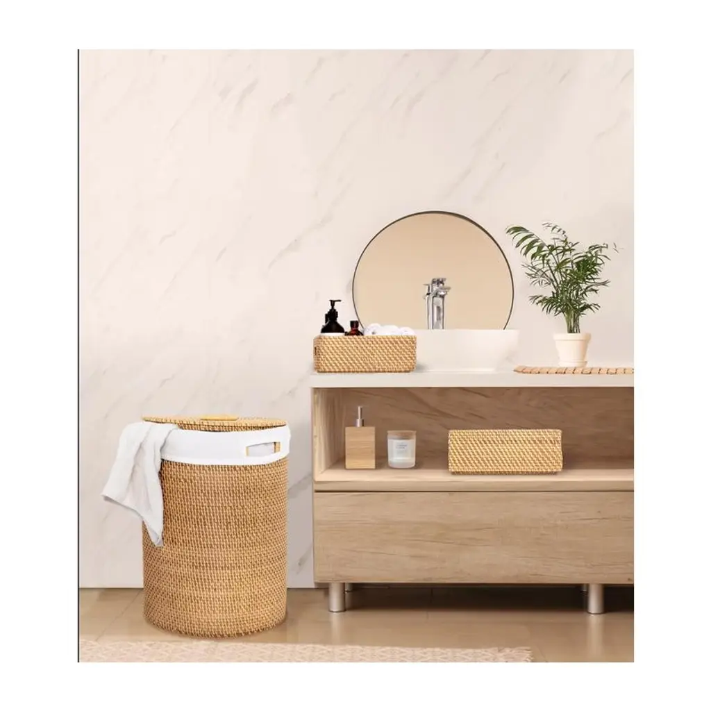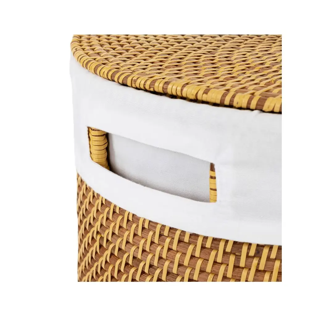 Seville Classics Rattan Wicker Handwoven Round Laundry Hamper 3 Piece Set