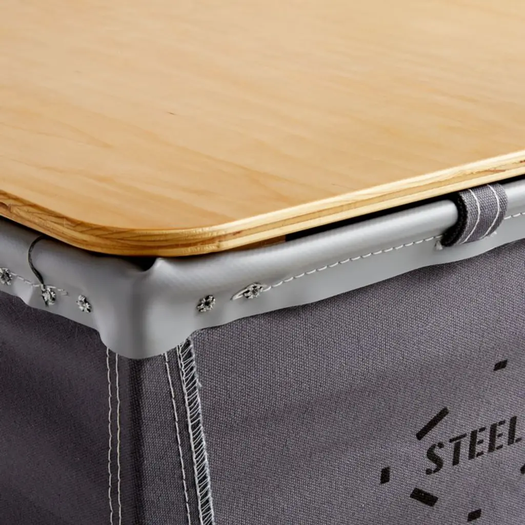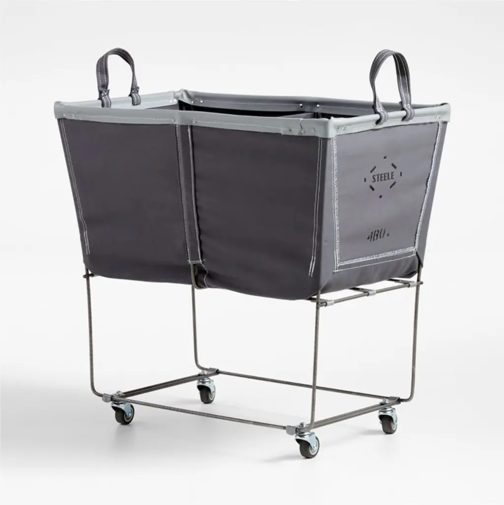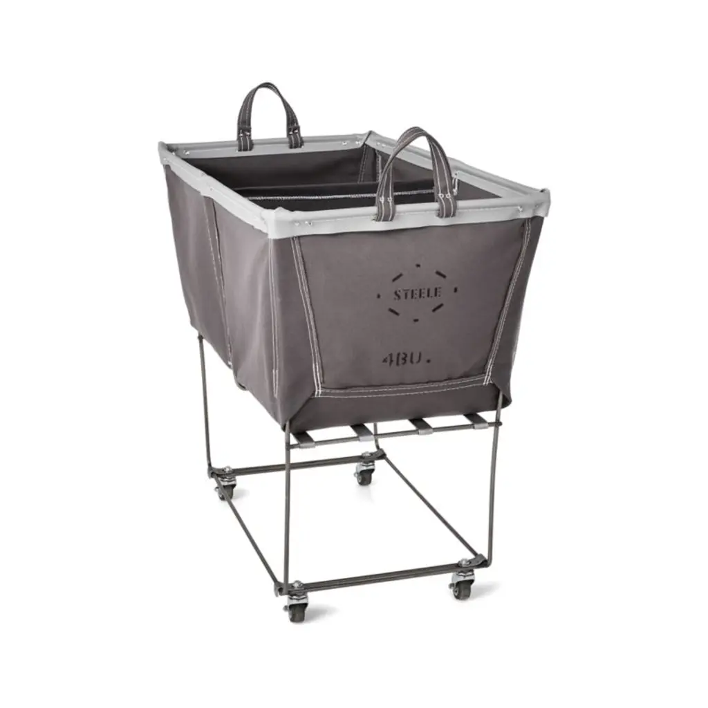 Beautify the laundry room while increasing organization and efficiency. This commercial-style divided canvas truck sorts whites and colors or cottons and delicates in a spacious partitioned bin at an ergonomic height that reduces the need to bend over. Crafted by the Steele Canvas Basket Co., the sturdy steel frame is wrapped in black 100% cotton canvas with a thermal plastic rubber edge. Designed with the authentic look and feel of a professional launderer's truck, its generous 200-pound capacity can handle heavy loads up to four bushels, gliding with ease on rubber casters. Finished with the mark of heritage, the Steele logo is hand-applied using the original brass stencil from nearly a century ago when the company began producing commercial-grade canvas products. View all Steele products