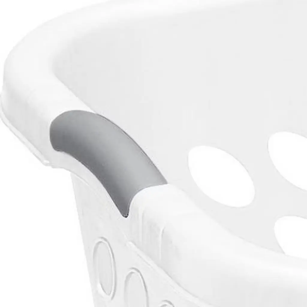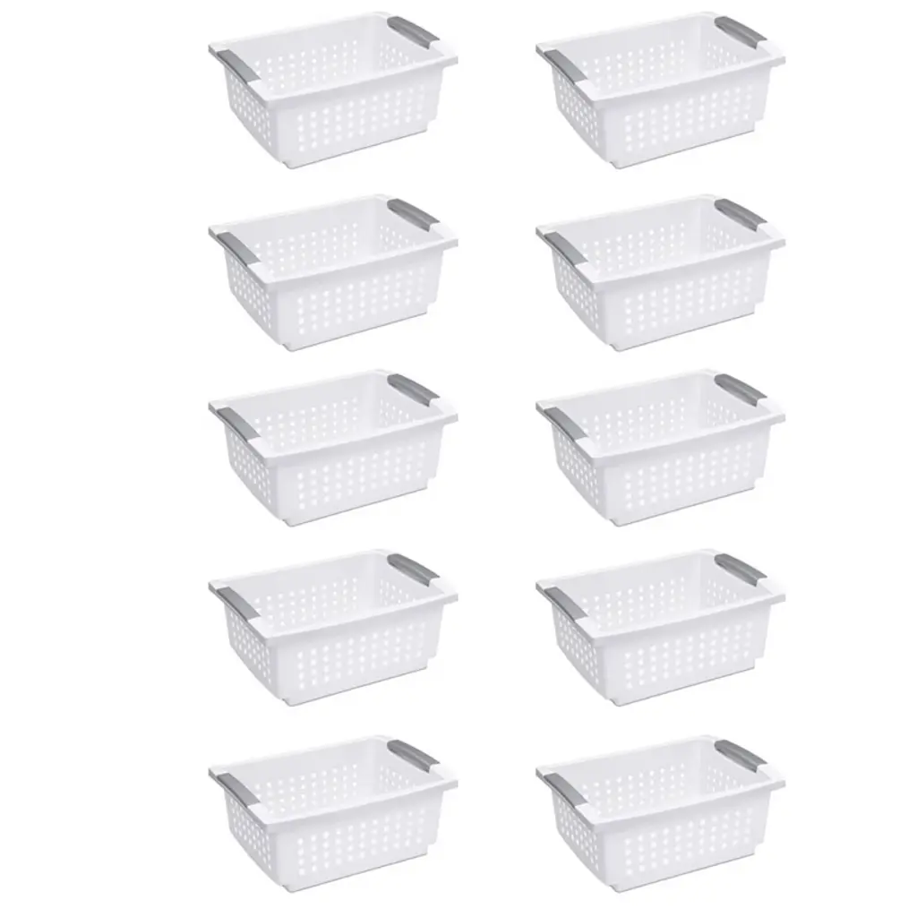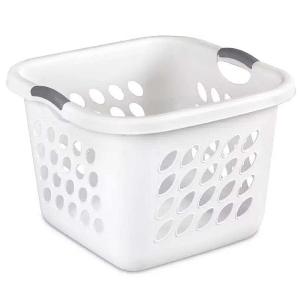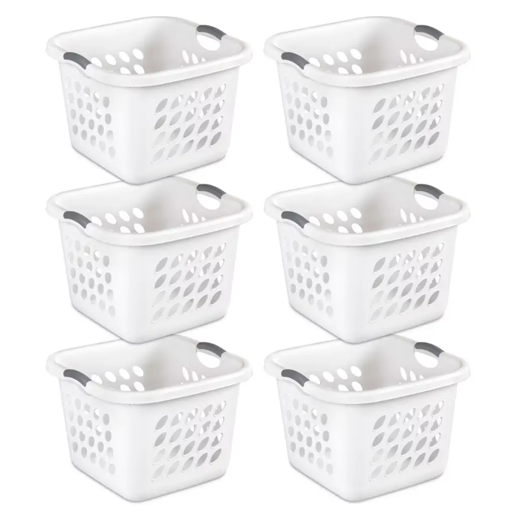 If you're looking for the perfect transport for your laundry, look no further than this 6-pack of Ultra Square Laundry Basket from Sterilite. These laundry baskets' versatile square design occupies less floor space and is perfect for holding and transporting clothes from room to room as you wash, dry, fold, and sort. These baskets offer durable construction and 4 comfortable handles with a grip that makes them easy to carry from any angle, making transporting clothes to the laundry room easy. The smooth plastic interior of these square clothes baskets is snag-proof and easy to clean. Even better, the interior offers a reinforced rim that holds up under regular day-to-day use. The hole pattern featured on these bins promotes airflow and provides ventilation for the clothes inside while eliminating excessive odors. This prevents your clothes from getting musty. Go ahead and use this 6-pack of Sterilite Laundry Baskets for sorting your household's clothing, towels, or sheets, and for transporting laundry between rooms.