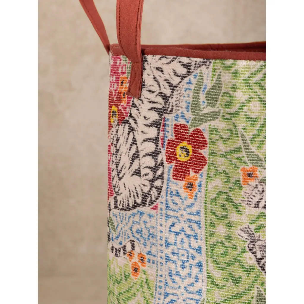The Sundance Laundry Storage Basket brings a touch of modern chic to everyday routines, showcasing 100% cotton craftsmanship sustainably sourced from India. Each basket is a labor of love, meticulously handcrafted with intricate patchwork detailing that features playful tigers and vibrant florals—a tribute to the creativity and artistry of skilled artisans. Designed to complement both modern and eclectic interiors, this basket redefines functional décor with a lively expression of contemporary design. Embrace this one-of-a-kind piece and elevate your living space with a blend of practicality and visual artistry, celebrating the spirit of traditional craftsmanship.