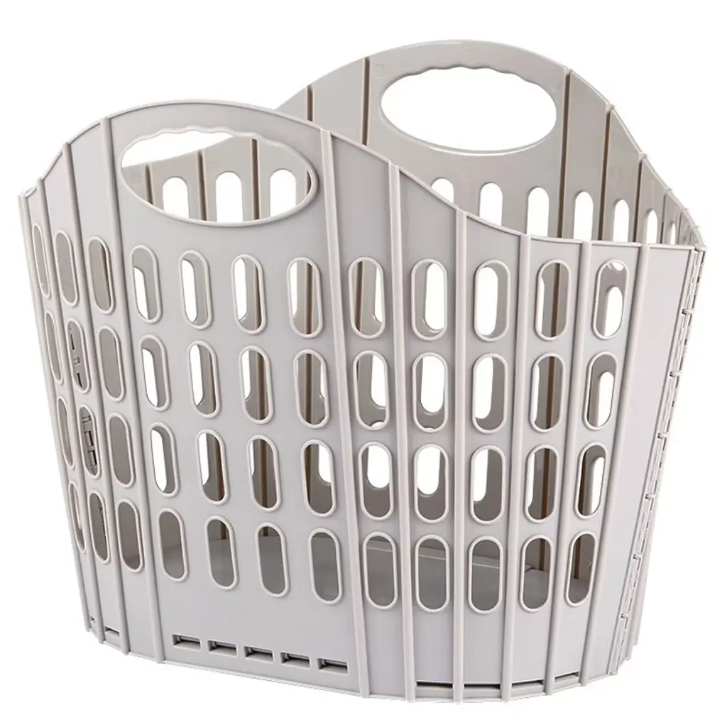 Space-saving Foldable Laundry Hamper is designed for apartments, dorms and wherever space is tight. When it is laundry time, this handy basket can stand upright on its own while you sort and fold clothes. When you're done, fold it flat for storage under a bed or between the washer and dryer. Made of: Polypropylene Measurements: 19-7/8"W x 14"D x 15-1/4"H