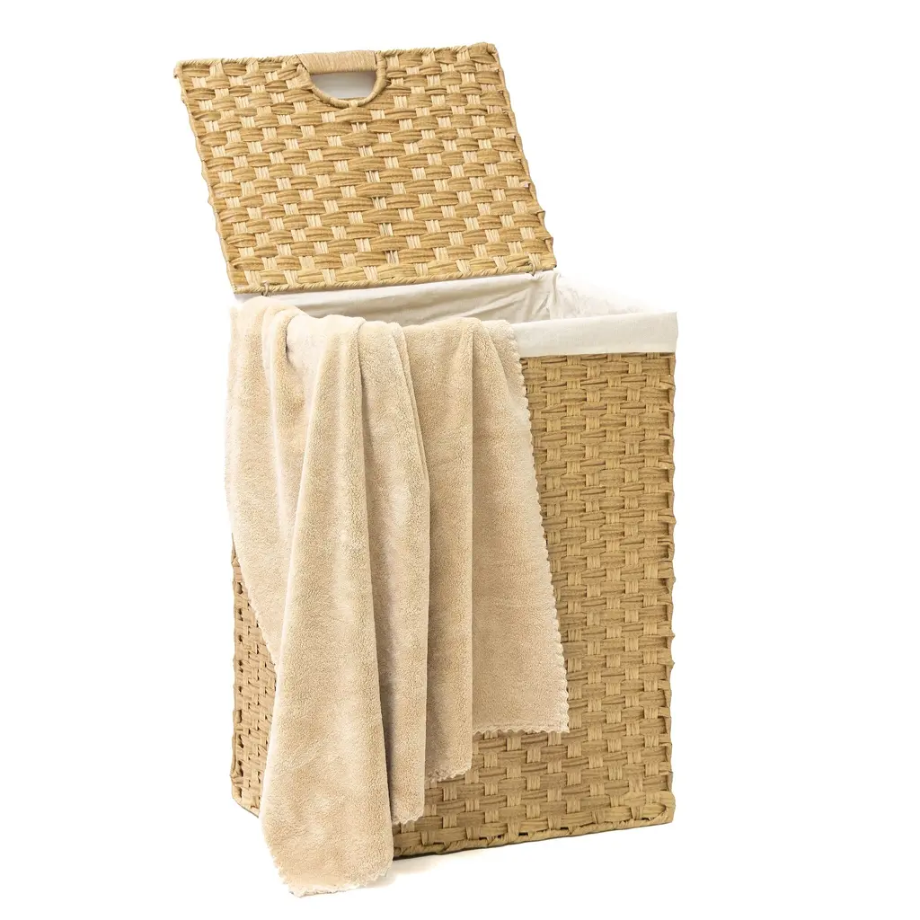 Trademark Innovations Synthetic Wicker Laundry Hamper Basket With Lid And Liner - Natural