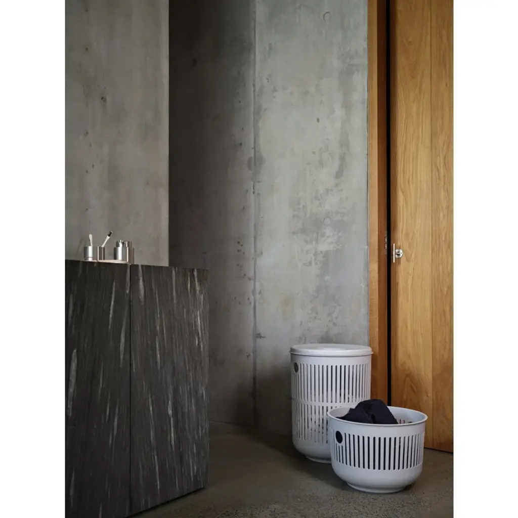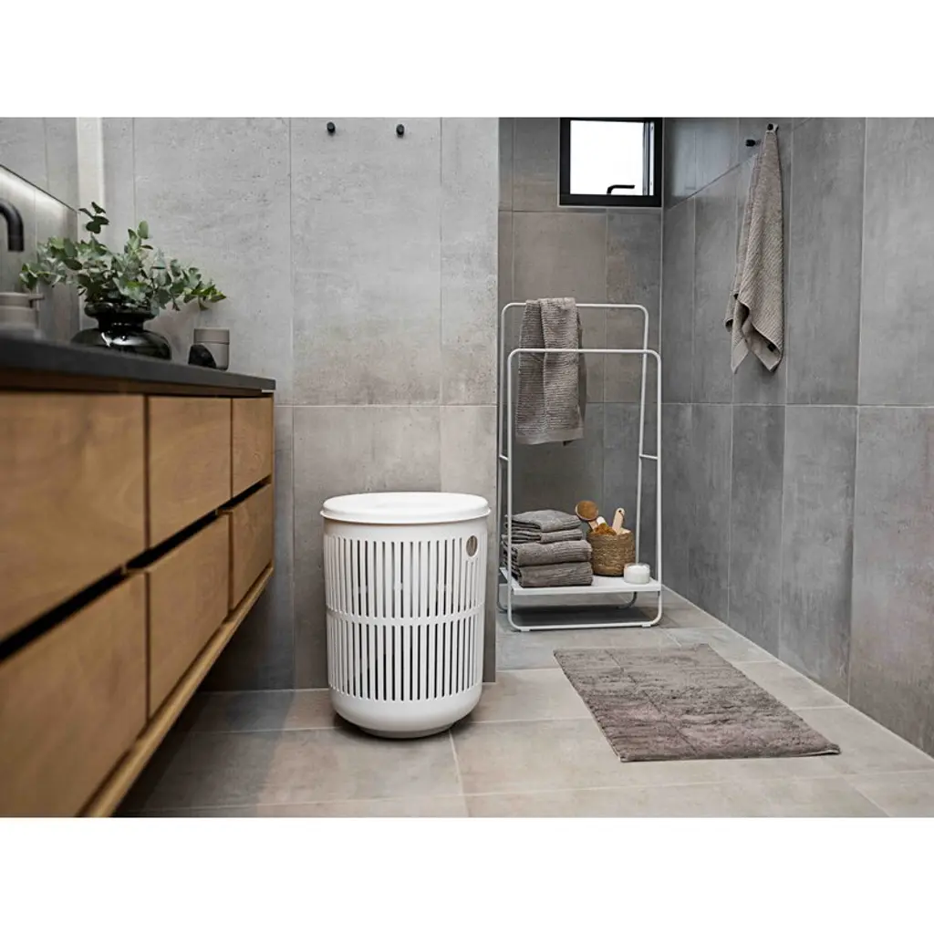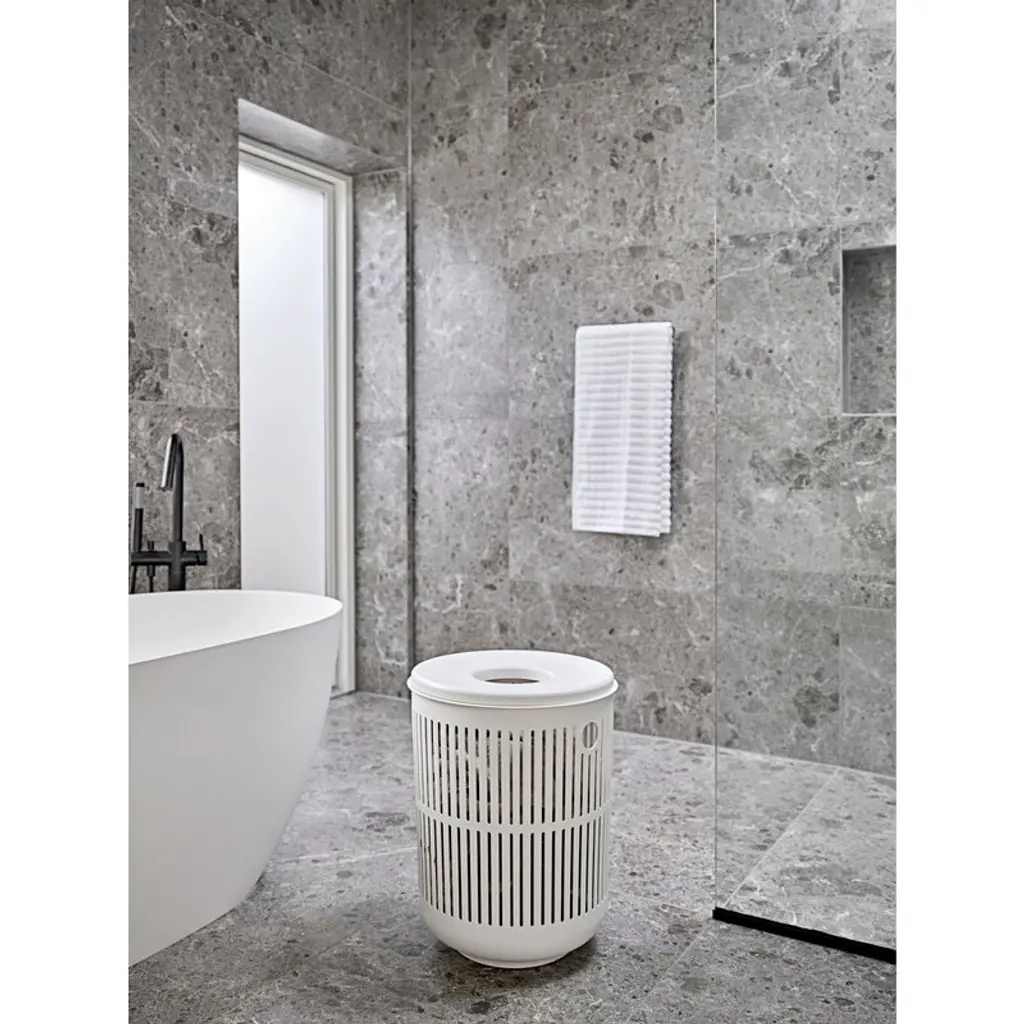Zone Denmark's Ume laundry basket offers a smart way to keep your dirty laundry out of sight. The basket's sleek design doubles as a chic décor element for your bathroom or walk-in closet. The spacious 60-liter capacity means the Ume basket easily holds a generous load of laundry – perfect for those extra days between wash cycles. Made from durable polypropylene, the laundry basket features a perforated stripe pattern that’s as practical as elegant. The openings allow air to circulate, keeping clothes fresher while they wait for wash day. There’s even a clever hole in the lid, so you can toss smaller items straight in without lifting the top. Smart, stylish and oh-so-convenient!