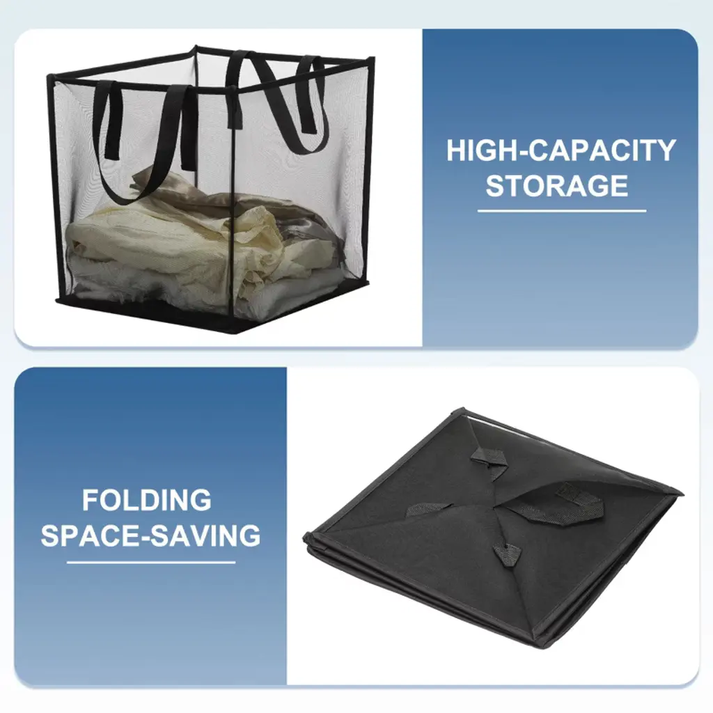 Unique Bargains Breathable Durable Foldable Mesh Travel Storage Laundry Hamper Black