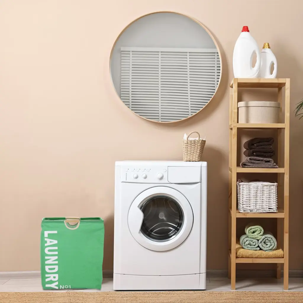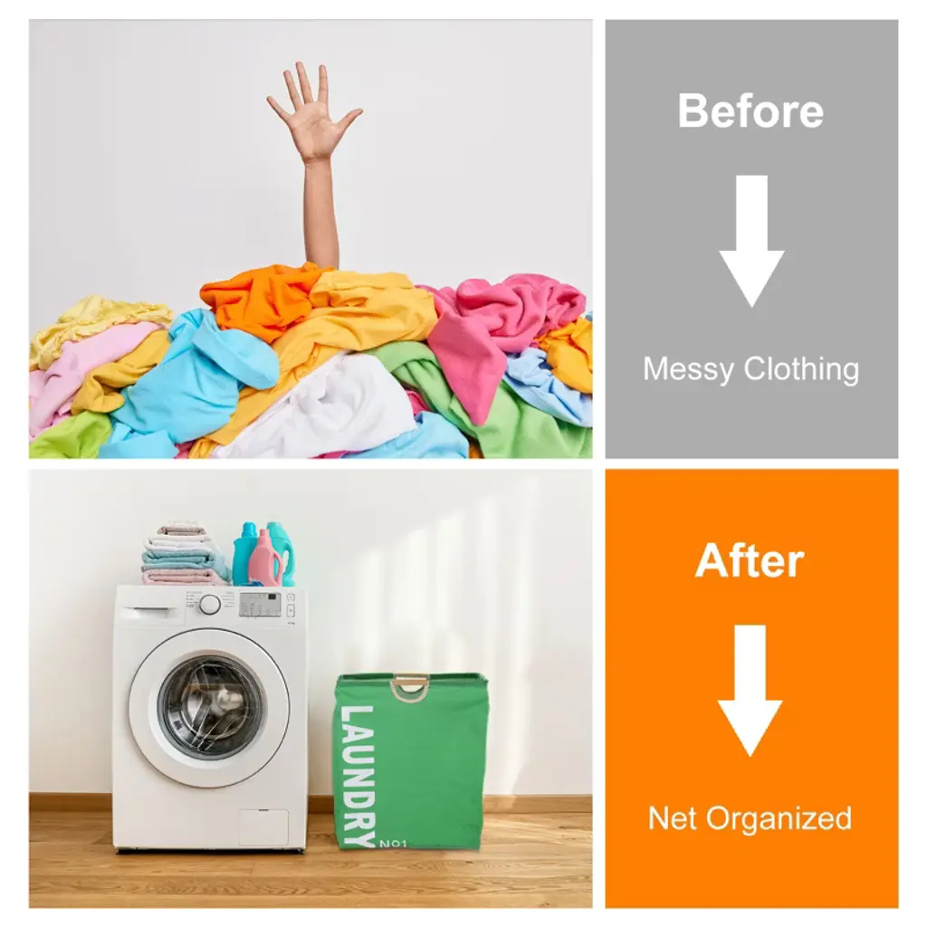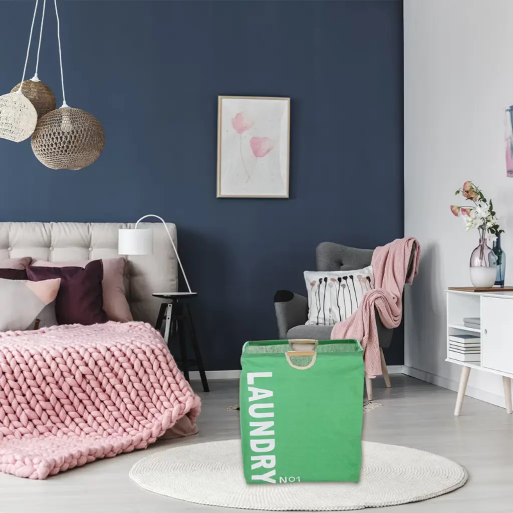 This foldable laundry basket is designed for easy storage and transportation. Made of durable cotton and polyester blend, it is soft and durable. When not in use, it can be folded flat for easy storage in a corner or hanging on the wall. Reinforced handles for easy carrying to the laundry room. It is ideal for organizing all kinds of clothing, whether at home or traveling.