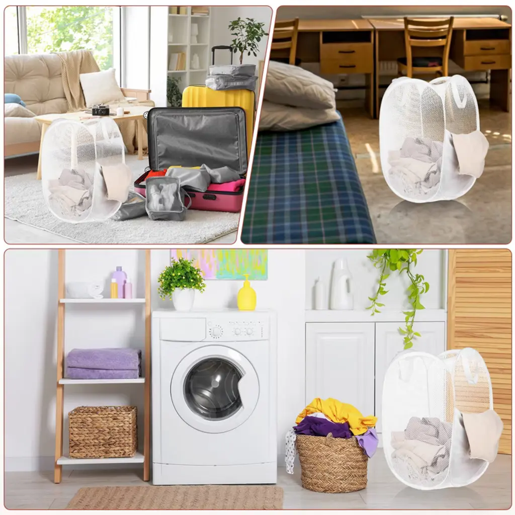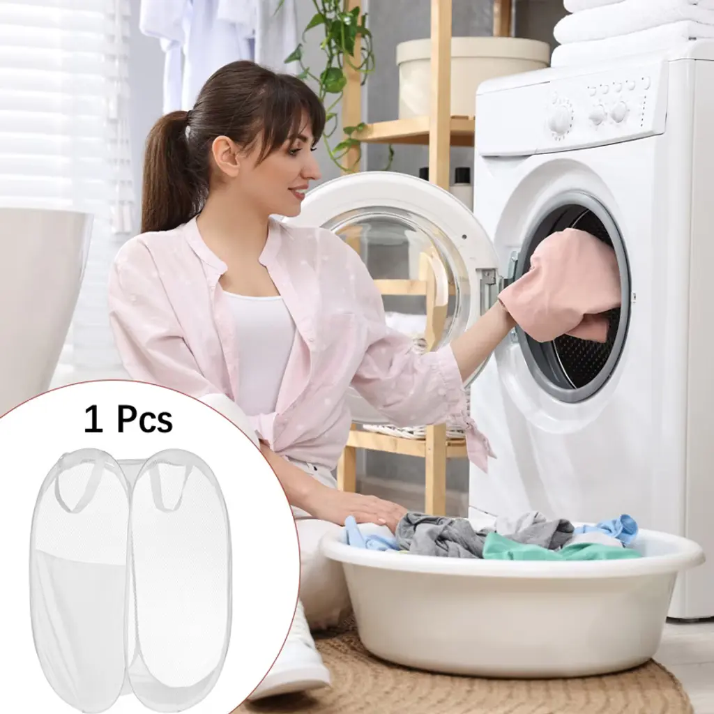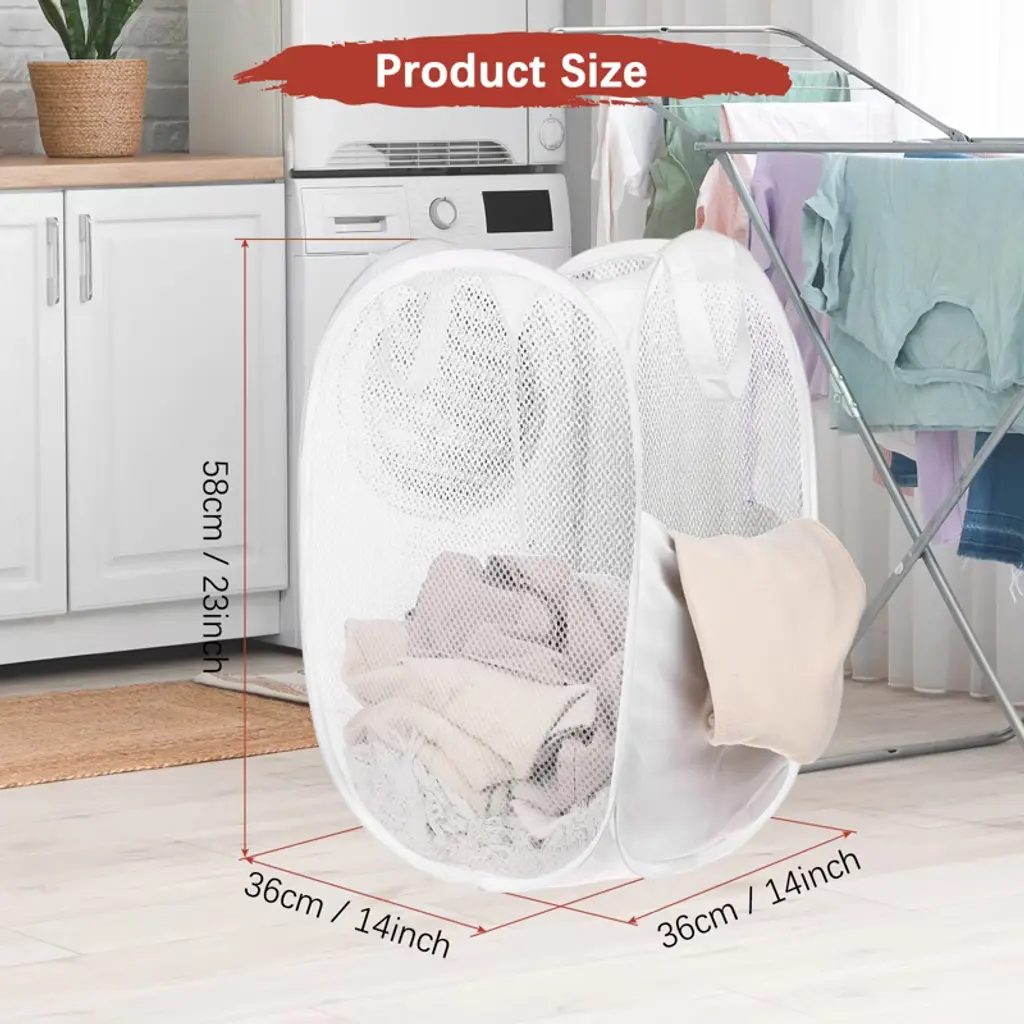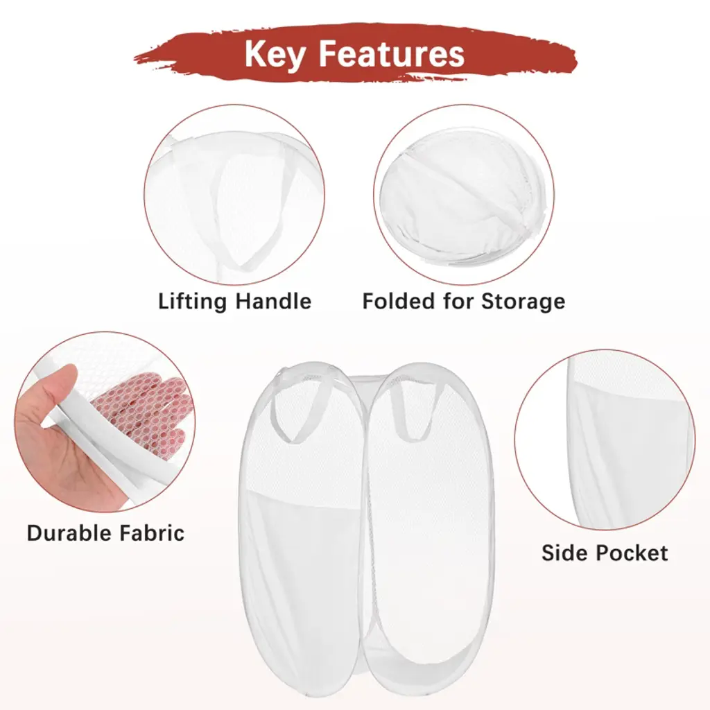 Featuring a collapsible design, this laundry basket is crafted from durable mesh material that allows for breathability and visibility of contents. The structure with reinforced handles and a side pocket enhances usability and portability, making it good for storing dirty laundry, linens, or miscellaneous items in any room. The foldable laundry baskets offer a versatile solution for organizing laundry, household items, or storage needs in homes, dorms, and travel settings. This mesh laundry hamper with a side pocket combines functionality and convenience for efficient laundry management and clutter-free spaces. Use and Warm Tips: Unfold the foldable laundry basket and secure its shape by adjusting the inner support rods. Place your laundry or items inside the hamper and utilize the convenient side pocket for storing essentials like detergent or dryer sheets. Carry the hamper using the reinforced handles and fold it flat for compact storage when not in use. Avoid exceeding the weight capacity of the Foldable Laundry Baskets to prevent strain on the handles or structure. Regularly empty and clean the hamper to prevent odors. Take precautions when folding or expanding the basket to prevent pinching fingers or damaging the support rods.