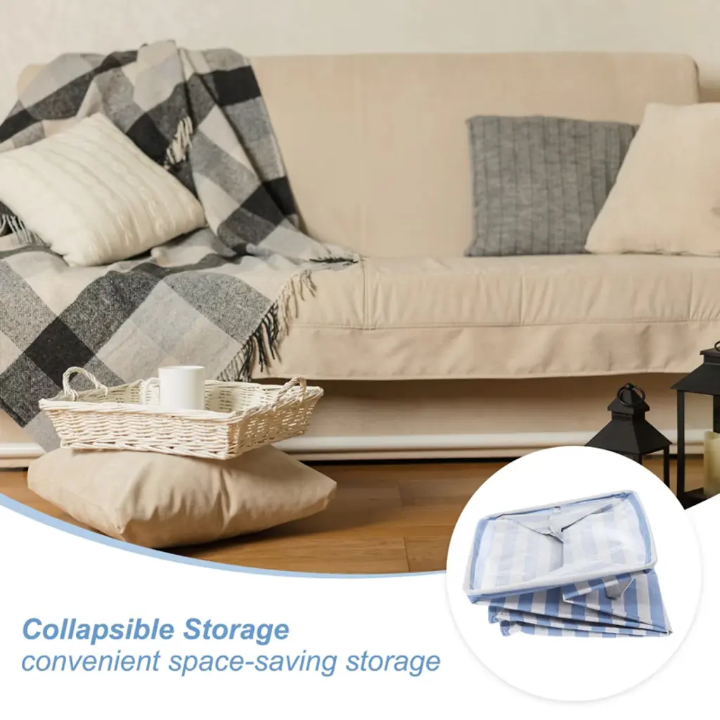 This laundry bag is made of polyester cotton with a waterproof lining and features a sturdy wire frame for individual storage. Its foldable design allows for convenient storage. Handles on both sides make it easy to lift and move, making it a breeze to store clothes. It's suitable for laundry rooms, bedrooms, bathrooms, closets, college dormitories, travel, and hotels. Its flexible design accommodates a variety of storage needs around the home.