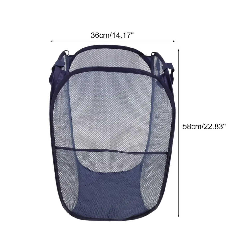 Unique Bargains Folding Laundry Basket 14.17"x22.83" Navy Blue 1 Pc