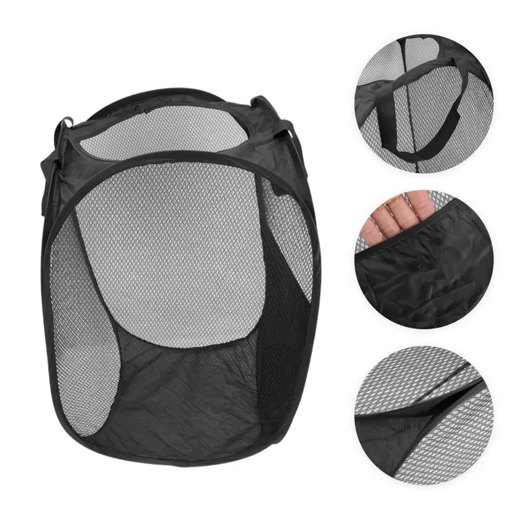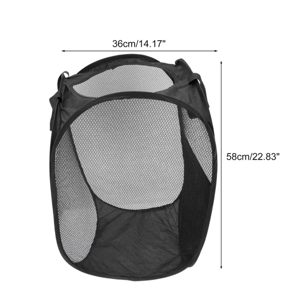 Unique Bargains Folding Round Laundry Basket 14.17"x22.83" Black 1 Pc