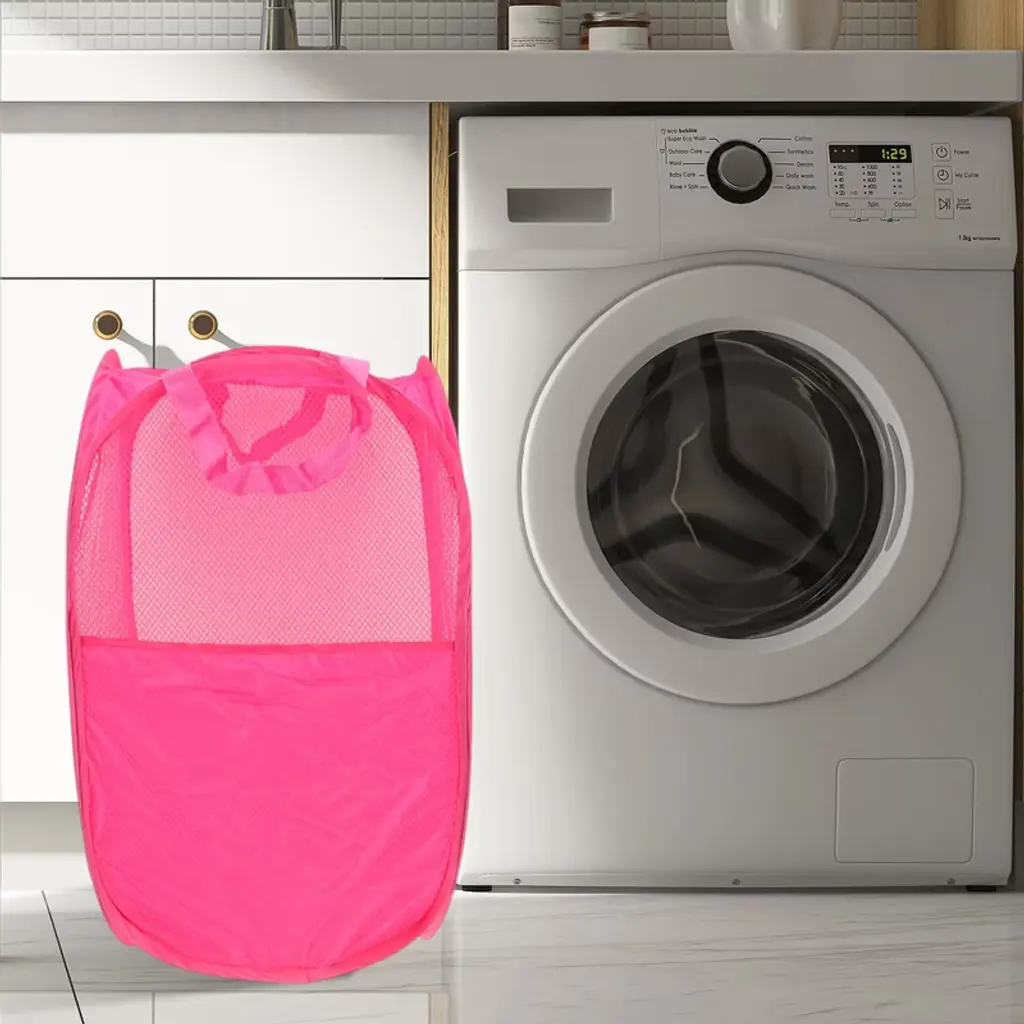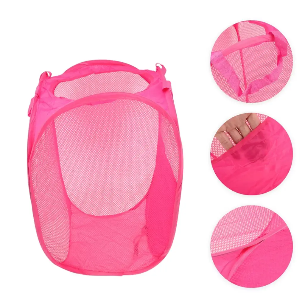 Unique Bargains Folding Round Laundry Basket 14.17"x22.83" Rose Red 1 Pc