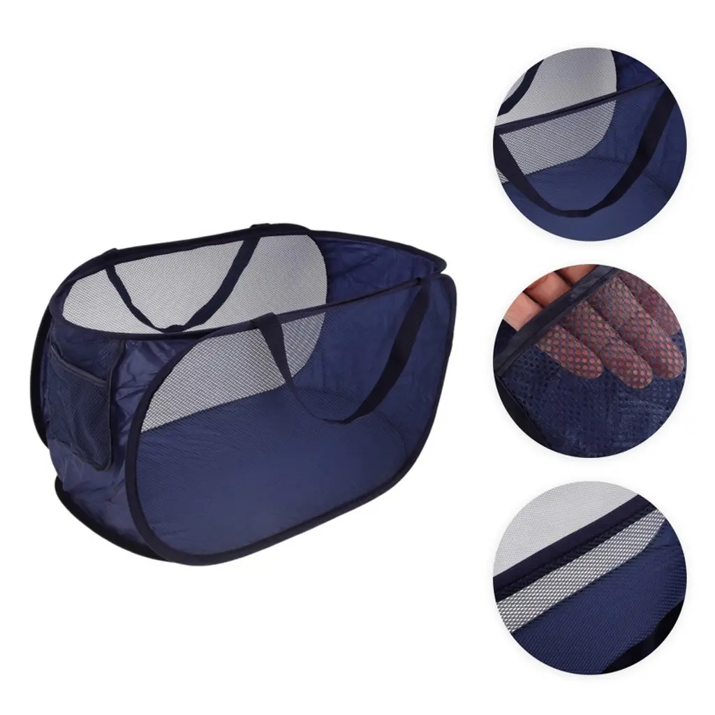 Unique Bargains Folding Single Layer Laundry Basket 22.83"x14.17"x14.17" Navy Blue 1 Pc