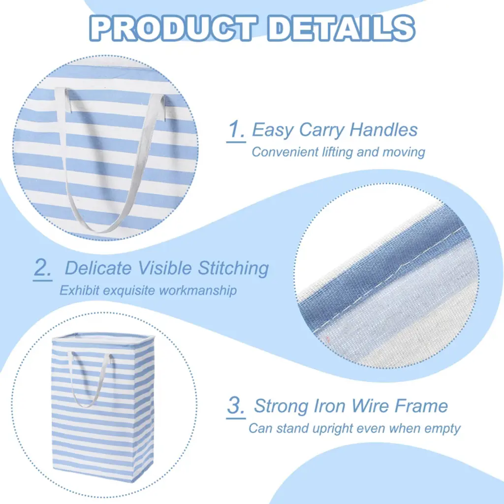 Unique Bargains Large Foldable Waterproof Storage Easy Carry Handles Laundry Basket Blue Stripe