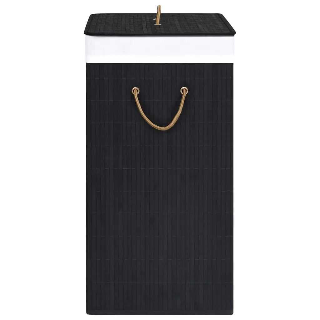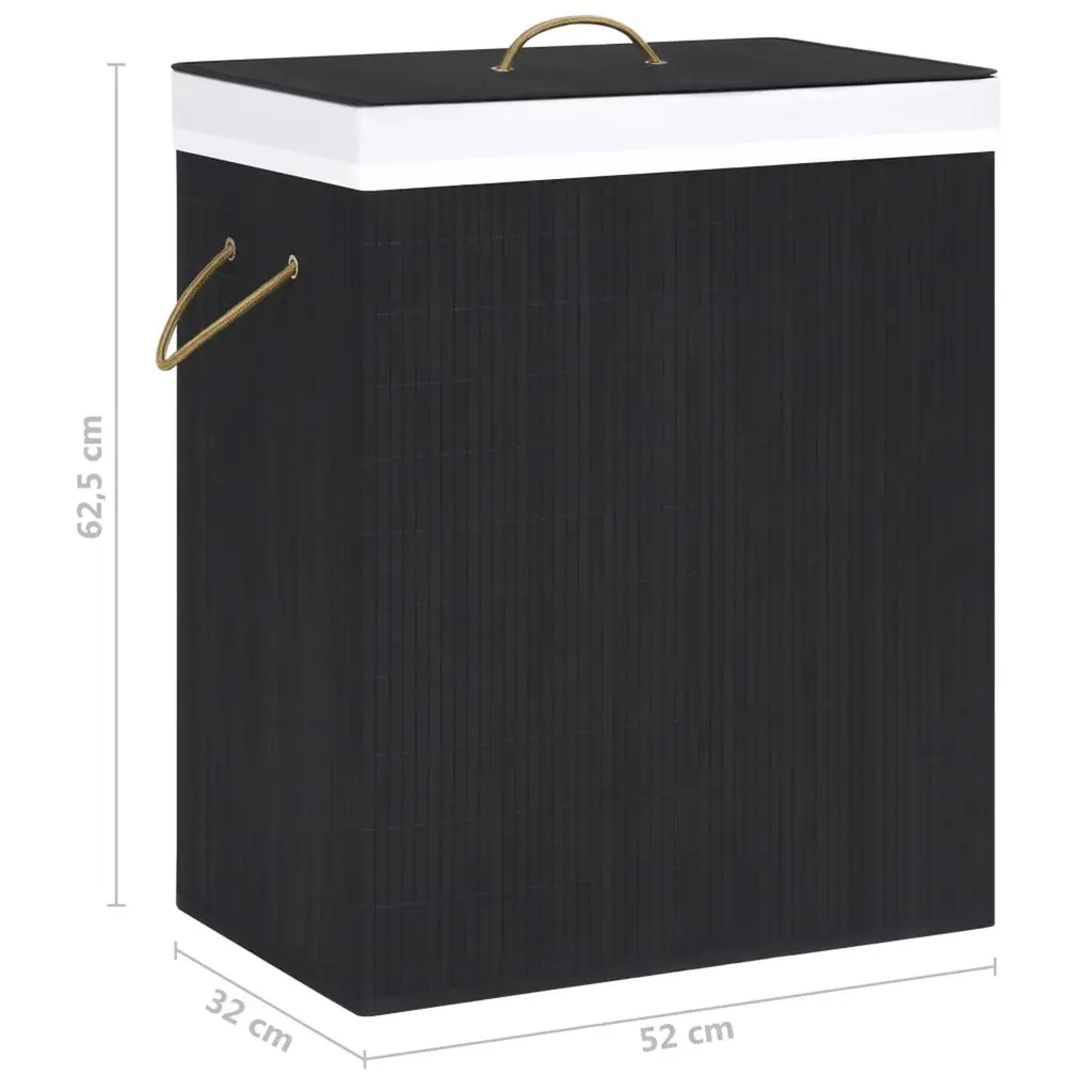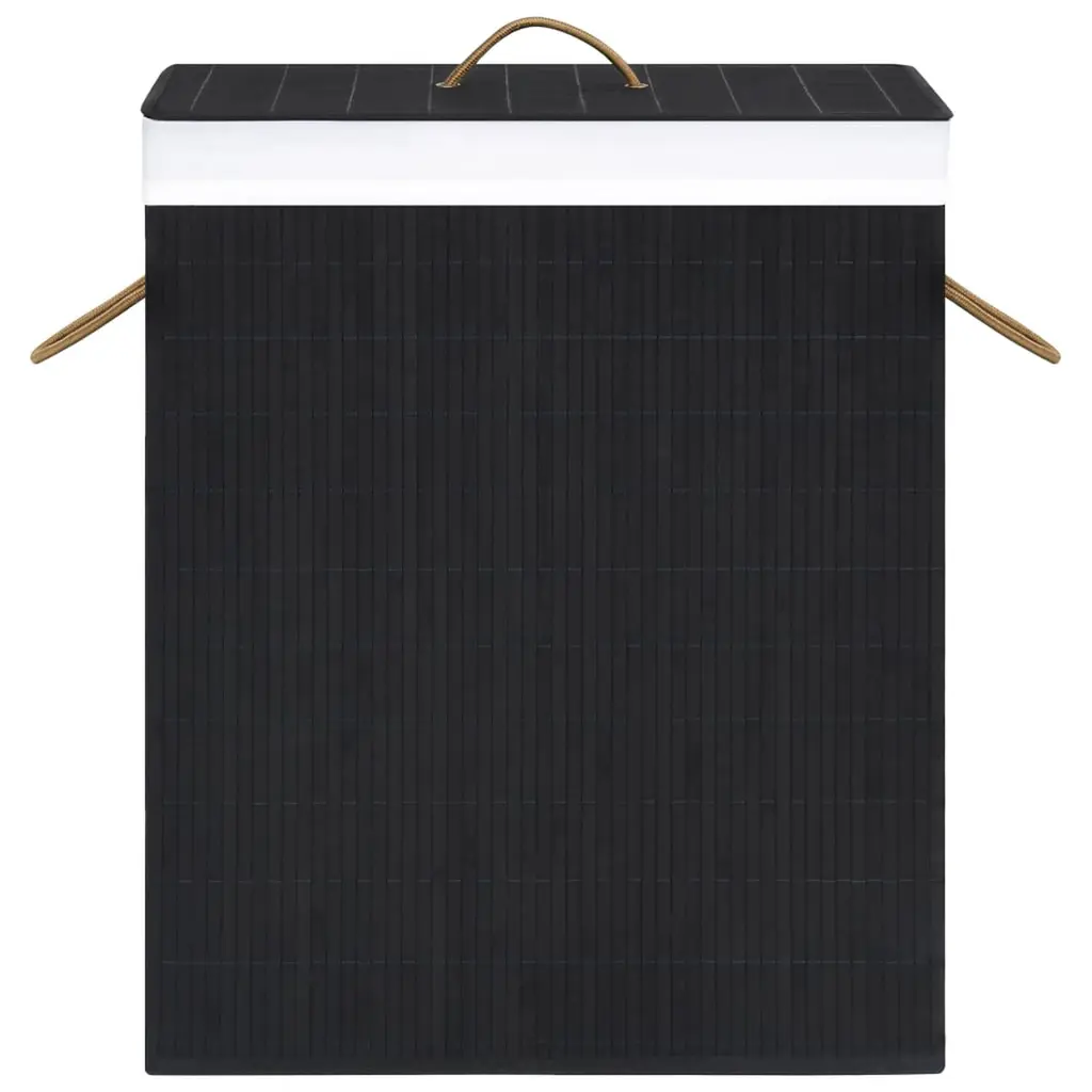 Vidaxl Bamboo Laundry Basket With 2 Sections Black 26.4 Gal