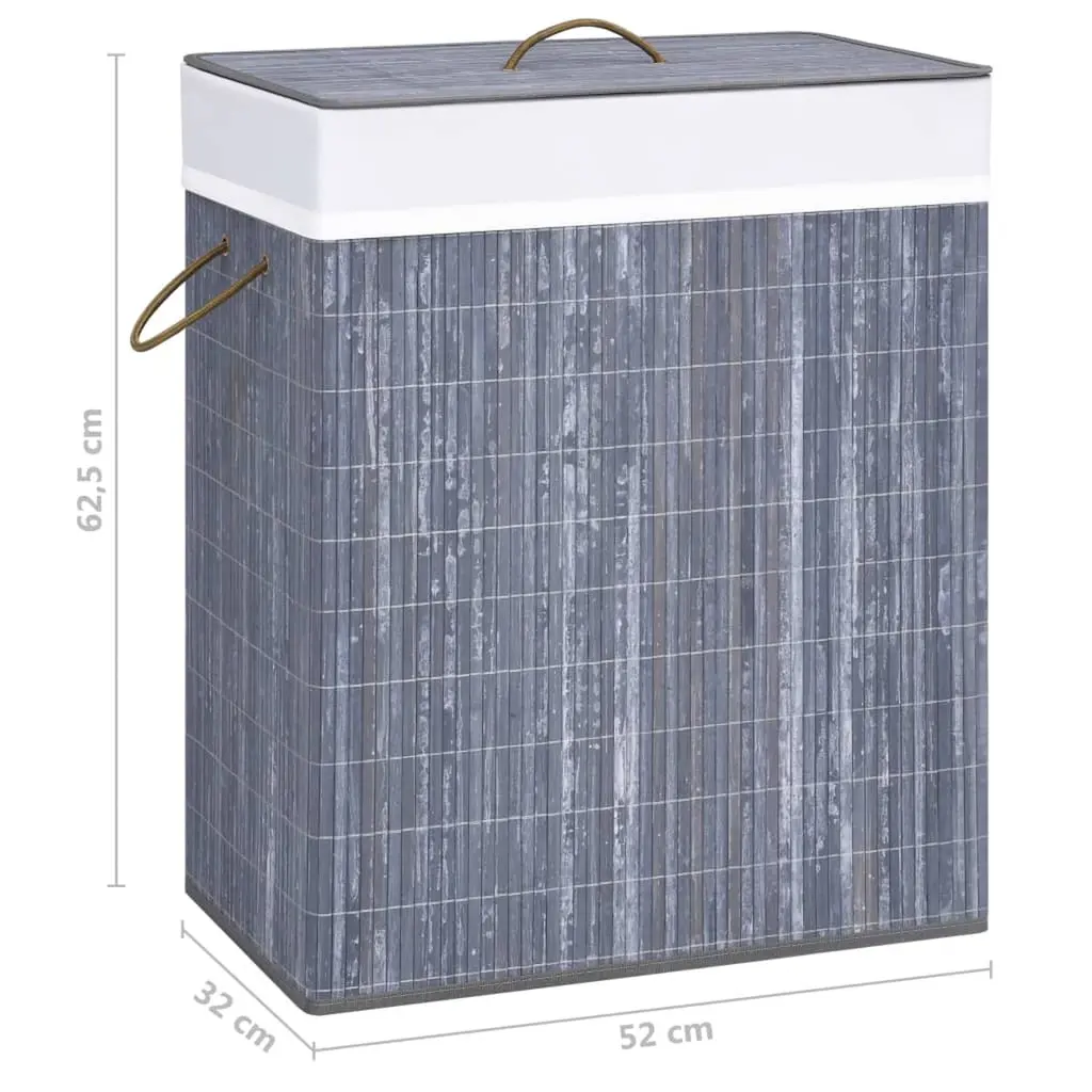 Vidaxl Bamboo Laundry Basket With 2 Sections Gray 26.4 Gal