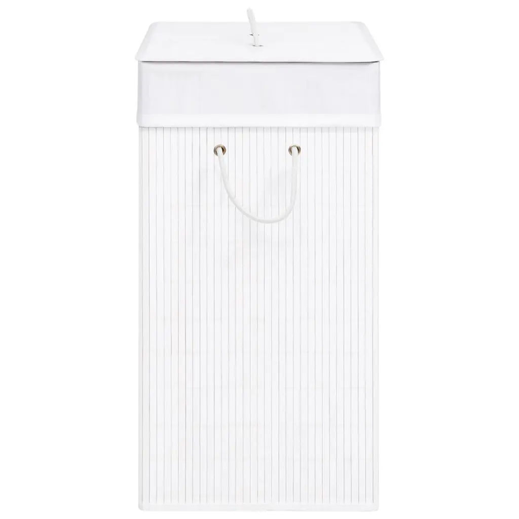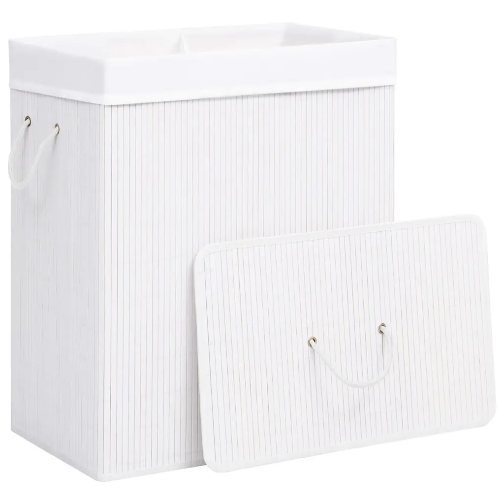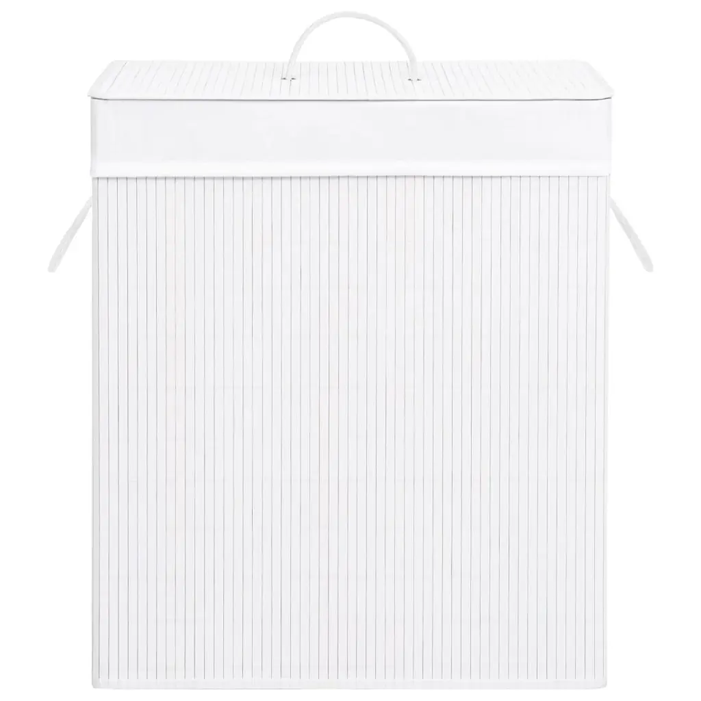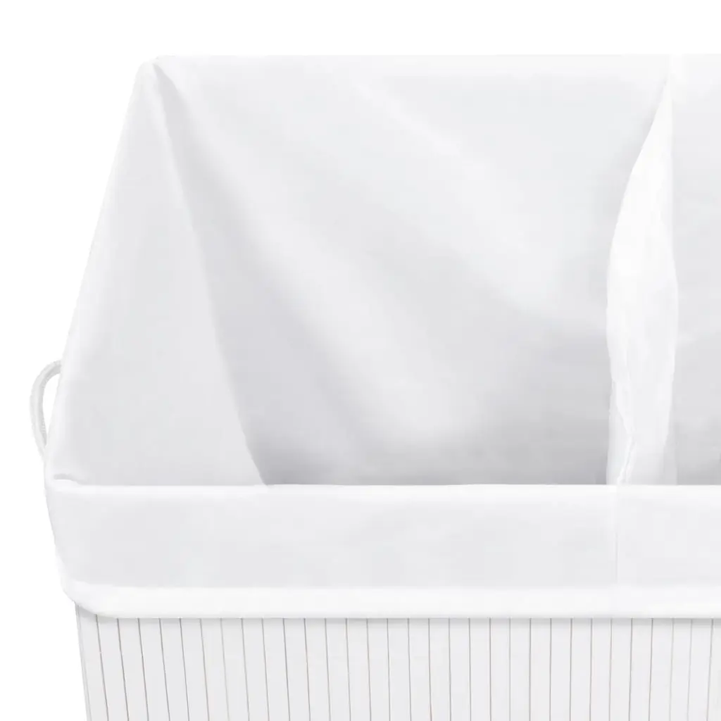 Vidaxl Bamboo Laundry Basket With 2 Sections White 26.4 Gal