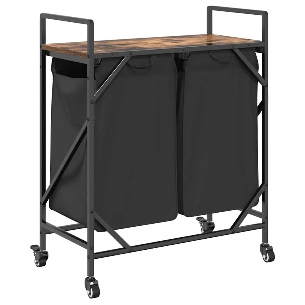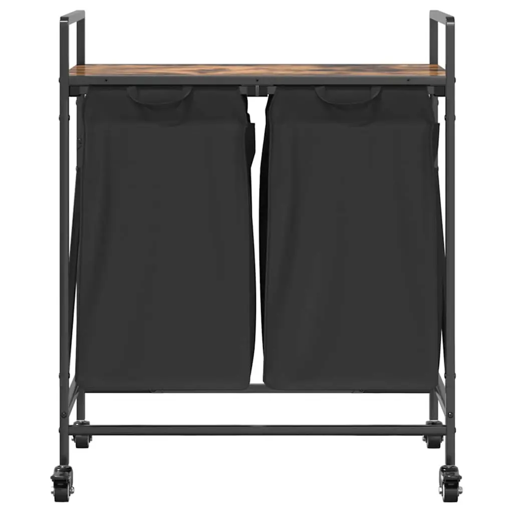 Vidaxl Laundry Basket 2 Compartments With Wheels Smoked Oak