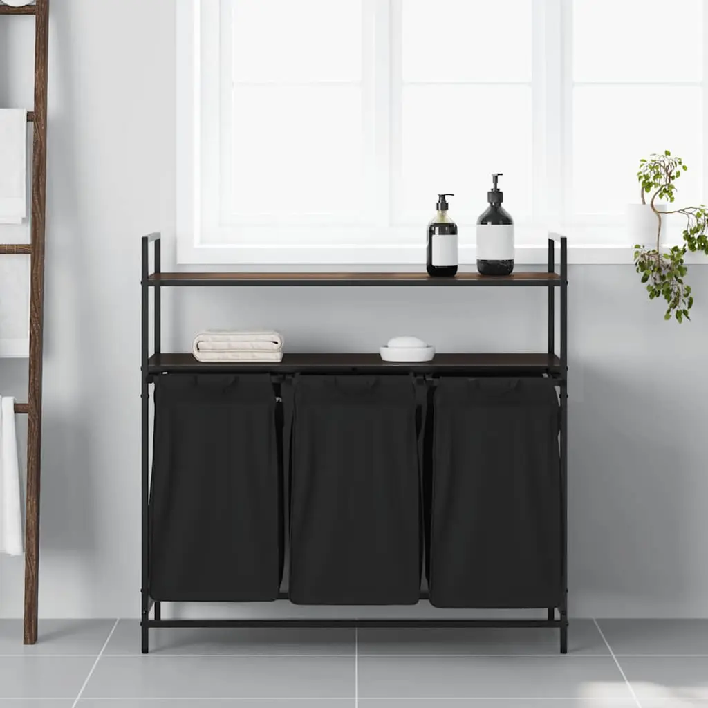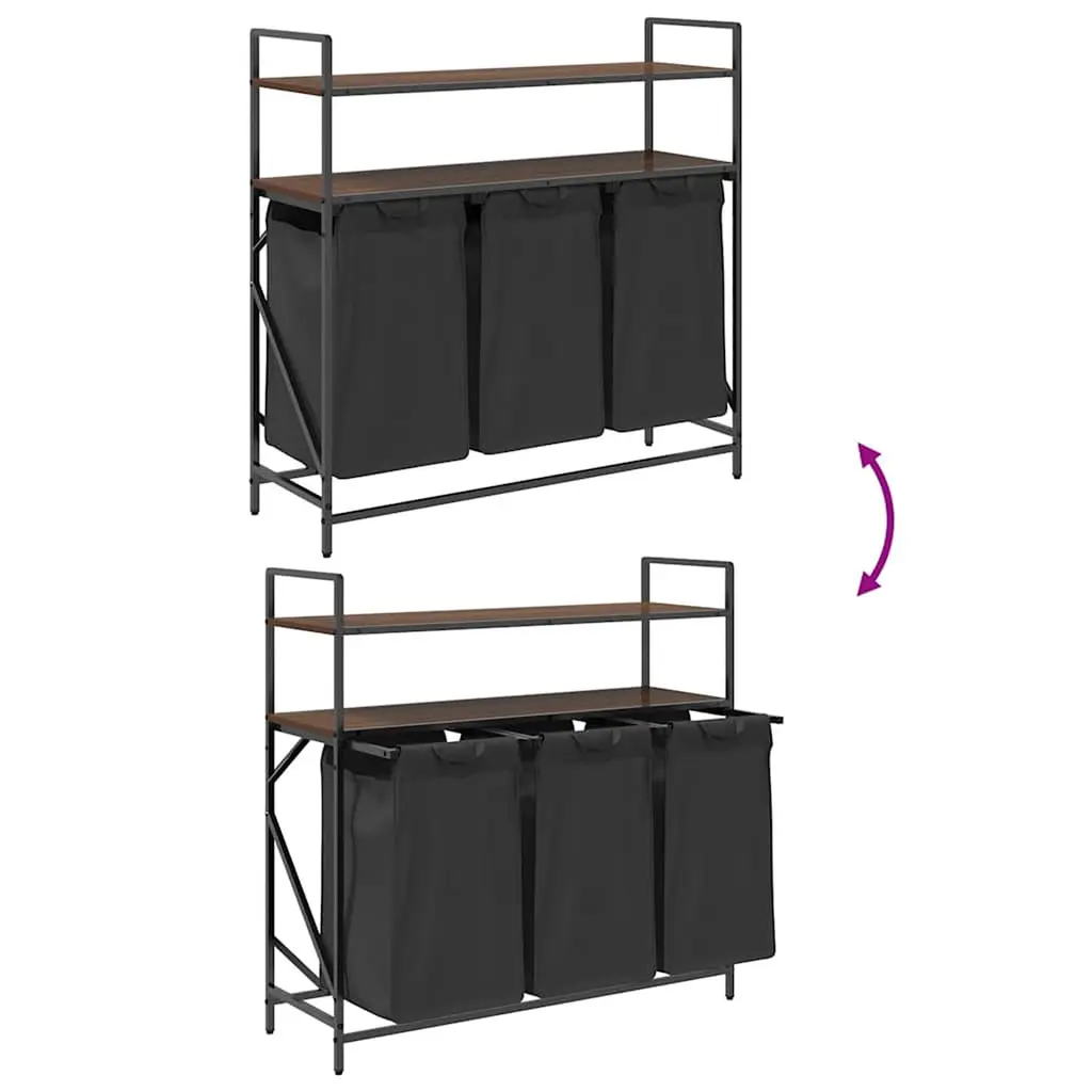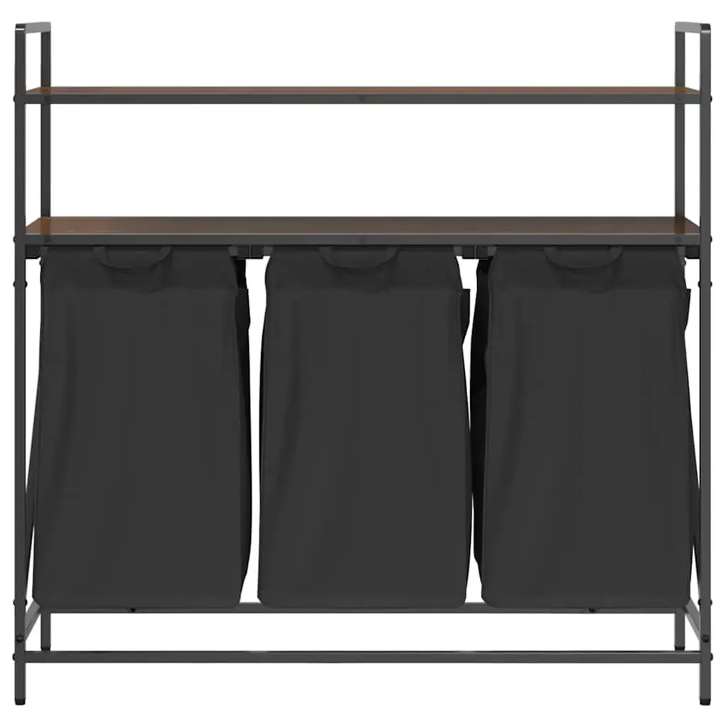 Vidaxl Laundry Basket 3 Compartments With Shelves Brown Oak