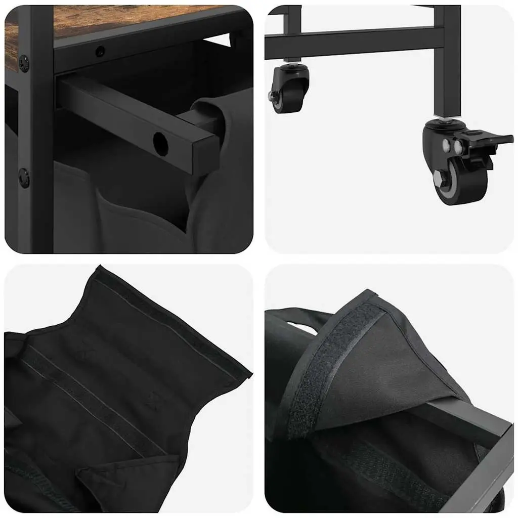 The laundry basket provides a spacious and convenient storage solution, featuring pull-out bags and wheels that make organising and transporting your laundry effortless.Laundry sorter: Designed to offer a generous load of laundry per bag, this organiser helps categorise garments by colour or fabric type, maintaining a clutter-free laundry area, and also storing toys and more.Convenient pull-out laundry bags: The removable laundry bags are designed with pull-out handles and hook-and-loop fasteners for easy detachment and pulling. The reinforced bottom panels help maintain the bags' shape and prevent sagging.Robust and durable structure: This laundry basket combines a steel frame with durable engineered wood, offering excellent strength, wear resistance, and stability.Top storage surface: The laundry basket features a top shelf, offering a practical solution for keeping your essentials within easy reach. Perfect for storing toiletries, laundry detergents, fabric softeners, or even decorative items.Effortless mobility: Featuring durable wheels for easy movement, this laundry basket allows you to smoothly roll it from room to room. Two of the wheels are equipped with brakes, ensuring that once you've placed the basket where you need it, it stays securely in place without rolling away.
