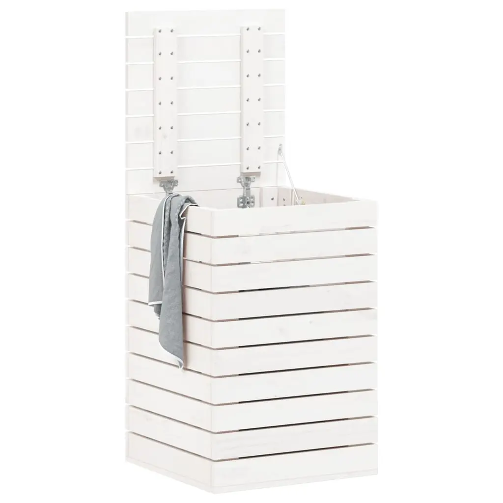 Vidaxl Laundry Basket White 17.3"x17.3"x26" Solid Wood Pine