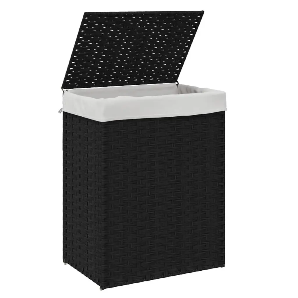Vidaxl Laundry Basket With Lid Black 18.1x13.0x23.6" Poly Rattan