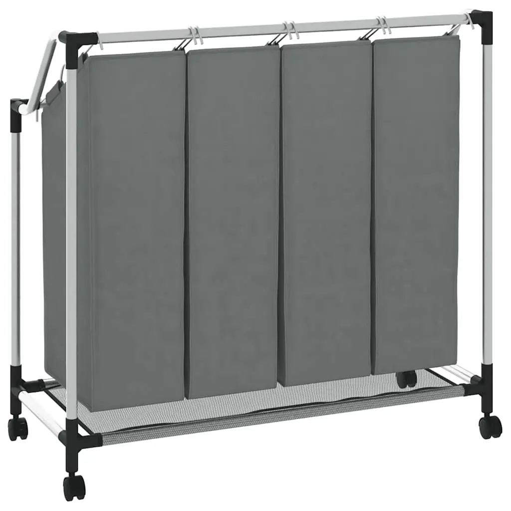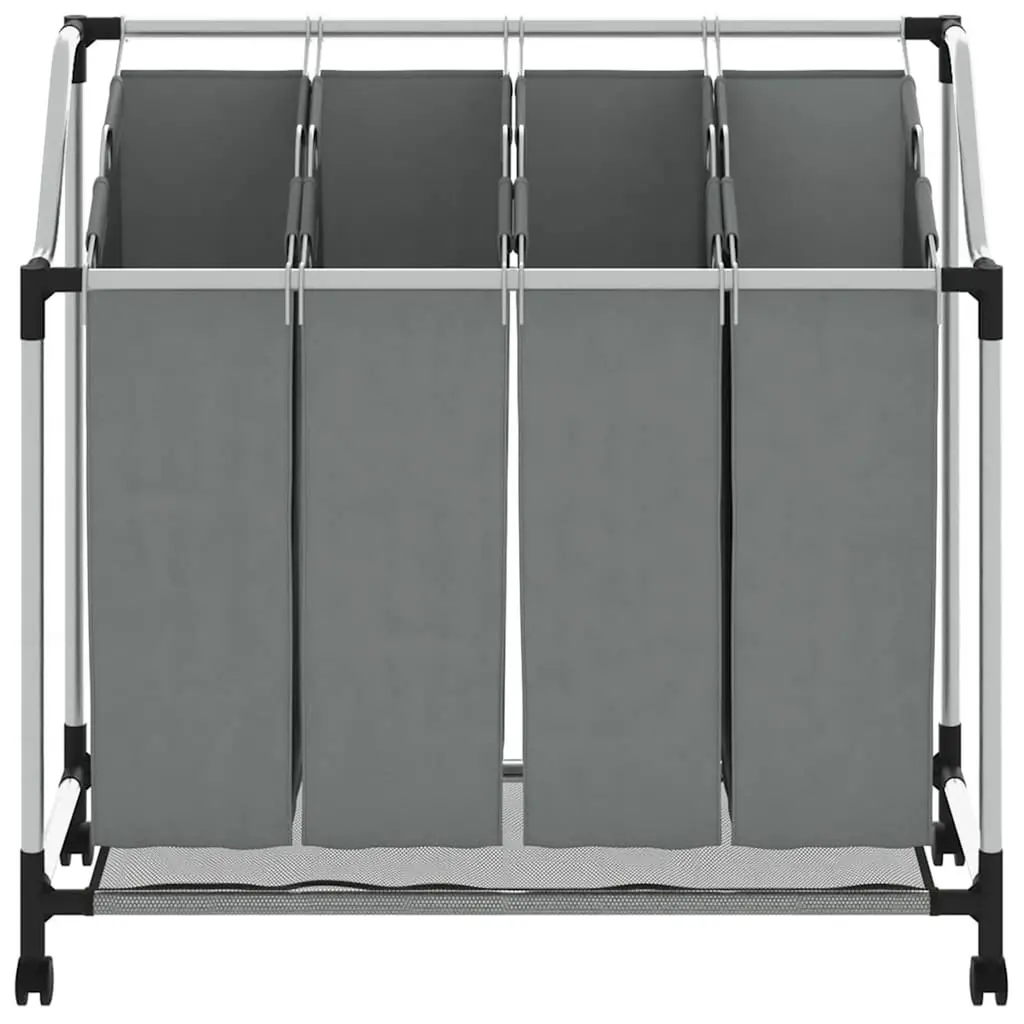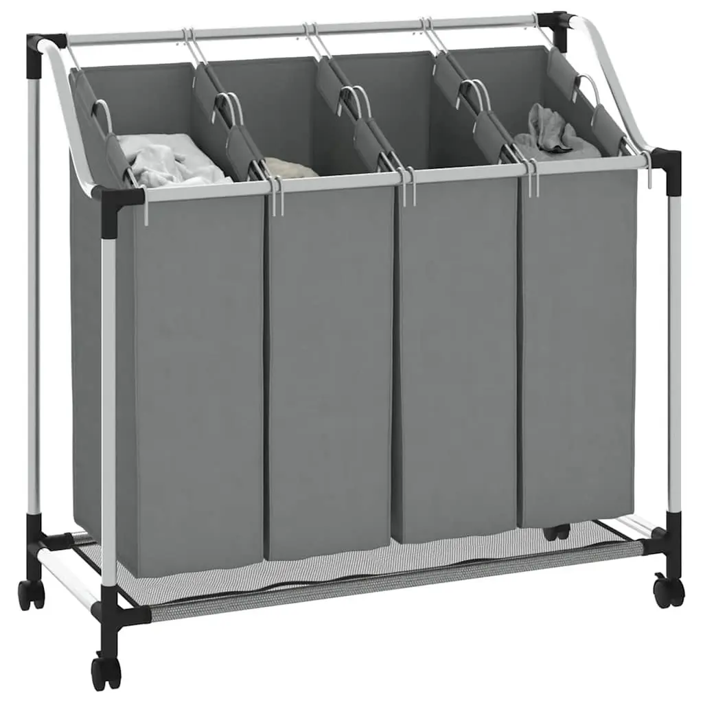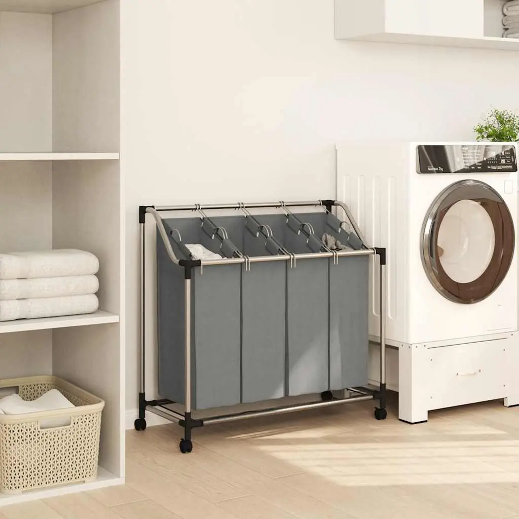 Vidaxl Laundry Basket With Wheels 4 Compartments Grey