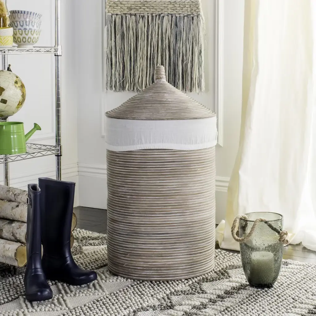 Wellington Laundry Basket With Liner - Hac6501 - White/grey White Wash - Safavieh