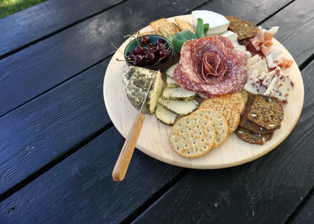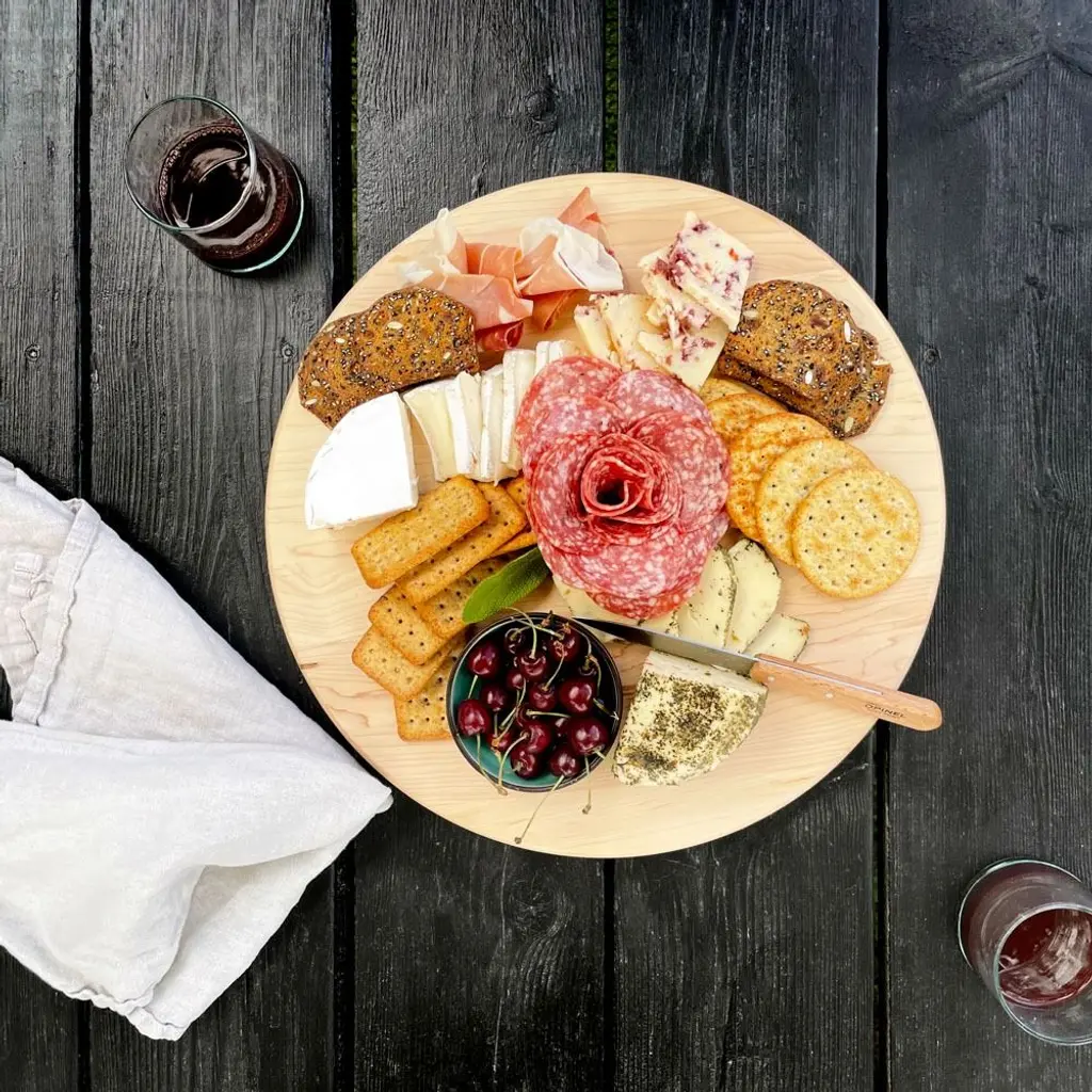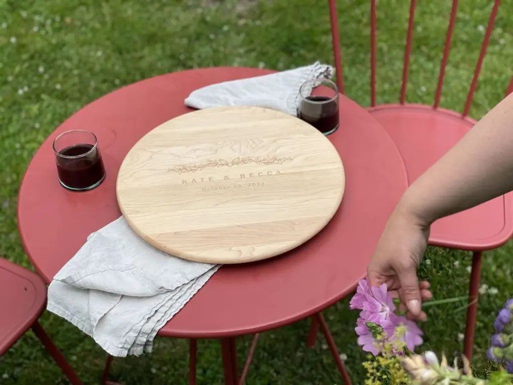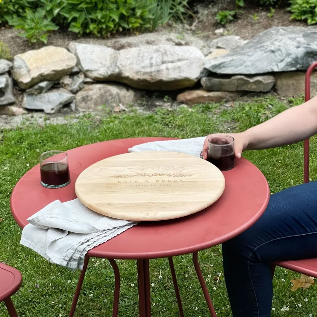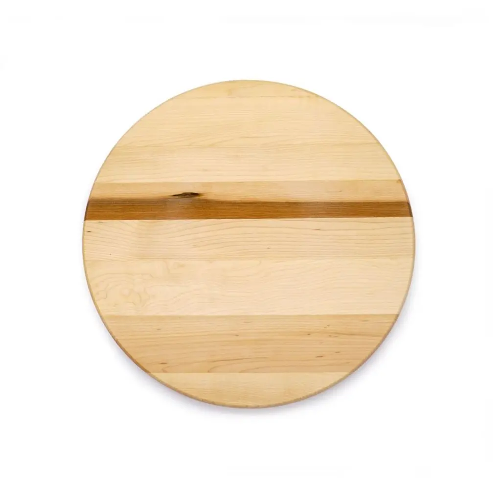American Made Solid Maple Wood 14" Lazy Susan. This 14" maple wood lazy Susan is perfect for serving condiments, appetizers or any other type of small dish. It rotates to ensure everyone at the table gets a turn. A Lazy Susan is a wonderful way for serving on your table our kitchen island. Features mineral oil & beeswax finish. Order options (contact showroom for pricing): Available in solid maple, solid cherry, or solid walnut 14" Round x .75"h 18" Round x .75"h 22" Round x .75"h Many custom engravings or carvings available. Contact showroom for details. This board has a lifetime guarantee, but please be sure to take good care: Wash gently with warm, soapy water after each use. Do not soak your board in water or put it in the dishwasher. Towel dry your board after washing, and allow it to air dry thoroughly. Condition your board regularly with JK Adams Mineral Oil or Beeswax Wood Conditioner. Do not use your board in the microwave. Lifetime Guarantee. No questions asked. Our products come to you with a 100% satisfaction guarantee. If you ever have any problems with a JK Adams product, we will replace it. Fully assembled. No particle board. Made in the USA. Manufacturer: JK Adams.