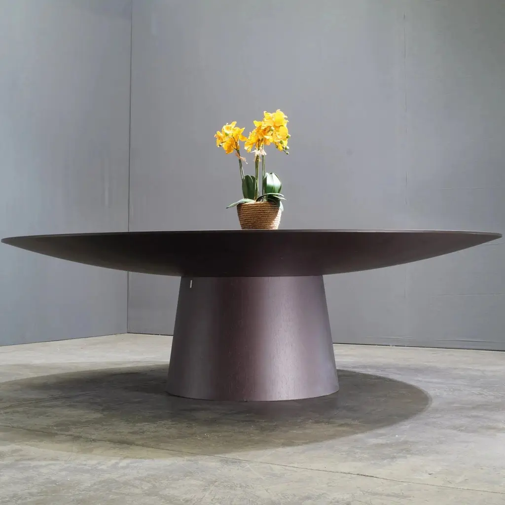 The Emmemobili UFO dining table with Embedded Lazy Susan by Ferruccio Laviani is a striking blend of futuristic design and practical functionality. Crafted with meticulous attention to detail, this table features a round top with an integrated Lazy Susan, perfect for effortless dining experiences. The table’s base, characterized by its sculptural form, adds a dramatic touch to any dining space. Made from high-quality materials, the UFO dining table stands out with its innovative design and luxurious finish. Ideal for contemporary interiors, this piece not only serves as a dining table but also as a statement of modern elegance and style. Enhance your dining area with the unique sophistication of the Emmemobili UFO dining table. Deliverable to ground floor only.