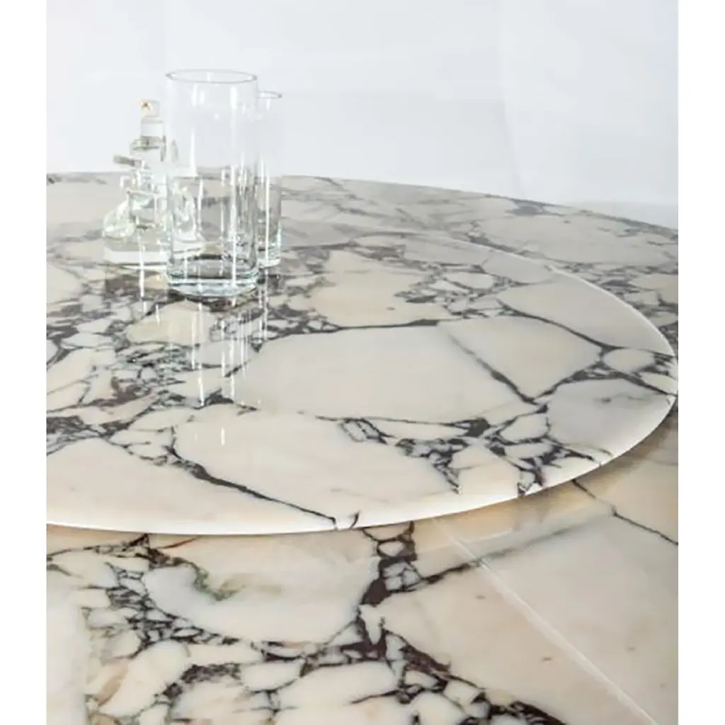 Indulge in the elegance of Casa Casati's Discoteca Marble with lazy susan. Crafted with solid marble top and lazy susan, this piece showcases a 70's inspired design with tubular legs that resemble a beautiful musical composition. Elevate your dining experience with this sophisticated and exclusive addition to your home.