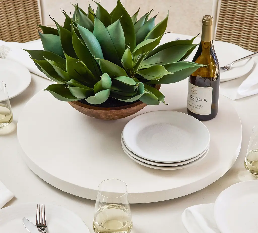 Modern and minimal, Pomona pairs exaggerated geometric forms with velvety texture to sculptural effect. Hand-poured concrete gives our Lazy Susan an appeal that endures the test of time and the elements. Its sun-washed tones also make it a versatile addition to the table.