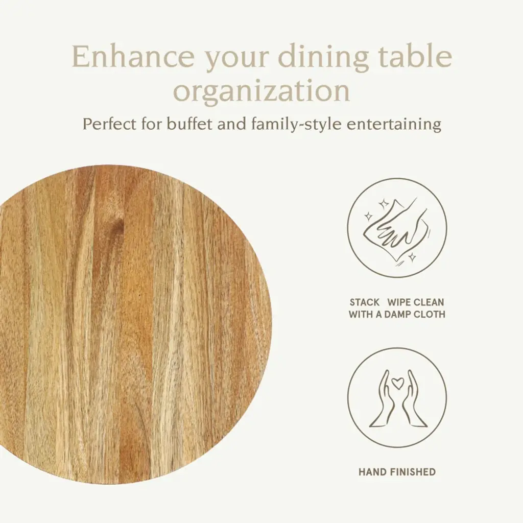 Enhance your dining table organization with our Wooden Lazy Susan Turntable. This versatile rotating organizer is the perfect addition to your dining experience. Effortlessly access condiments, snacks, or dishes with a simple spin, thanks to this handy lazy susan for the dining table. Crafted from sturdy wood, it not only offers practicality but also adds a touch of rustic charm to your decor. Elevate your mealtime convenience with this must-have lazy susan, ensuring everything you need is right at your fingertips.