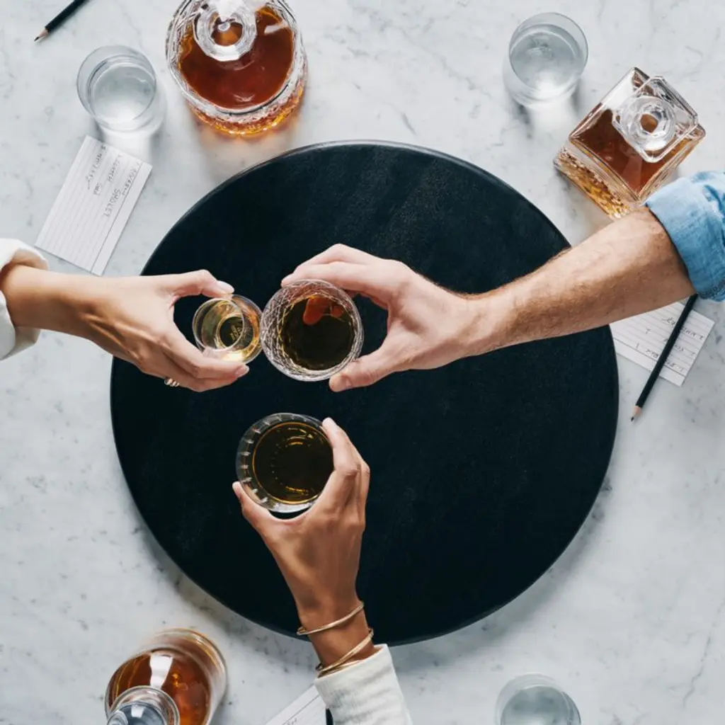 Richly grained acacia wood turns out in smooth, sculptural serving essentials with a black finish for a modern, dramatic look. Naturally suited to everyday use, entertaining or artful display, our lazy Susan rounds in organic curves, providing easy access to appetizers, cheeses or condiments. Our exclusive spinning server is carved out of a single block of wood. For a beautifully coordinated table, pair the lazy Susan with the other ebonized acacia serving pieces in our Tondo collection.