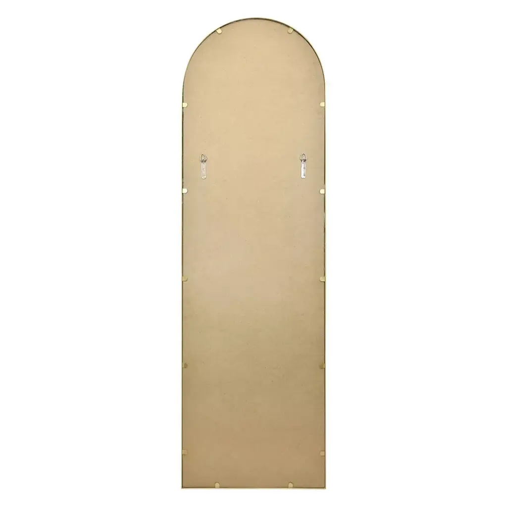 Add instant glamour and interest to your space with the Arched Steel Leaner Mirror from Threshold™. This wall-mount mirror has a timeless rectangular silhouette with an arched top for added intrigue, and is encased in a gleaming gold metal frame for a touch of glam shine. Whether you want to create an illusion of extra space in your entryway, use it as a functional accent in your closet or display it in your living room, this mirror is sure to make a statement in your space. Provided hanging instructions explain the two ways this mirror can be hung your wall or leaded against a wall using the provided anti-tip kit.