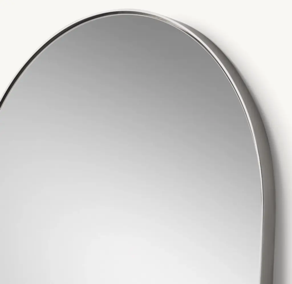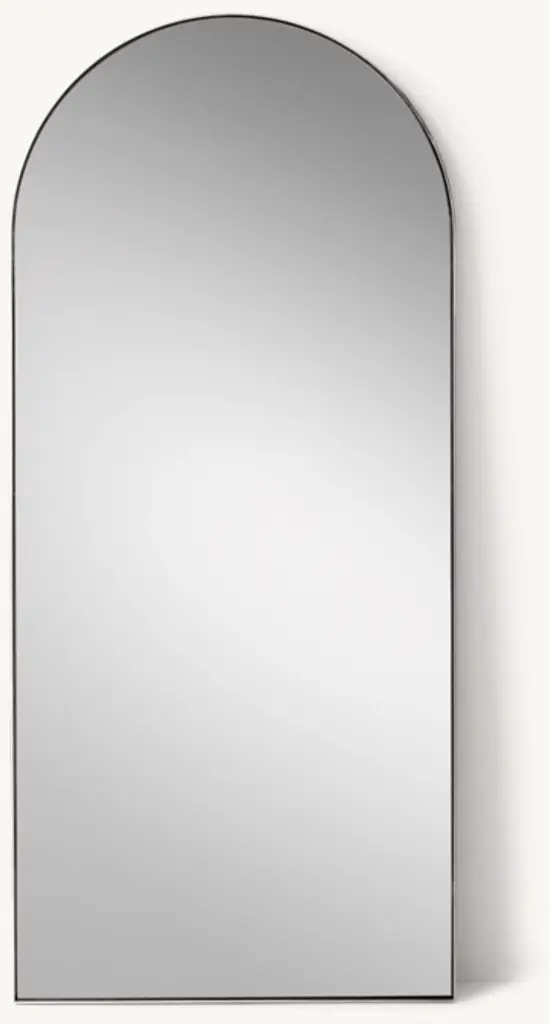 Our mirror balances classical proportions with the minimalism of 1950s design. Set within a thin metal frame, the arched profile adds bold architectural presence while creating the illusion of dimension and space.