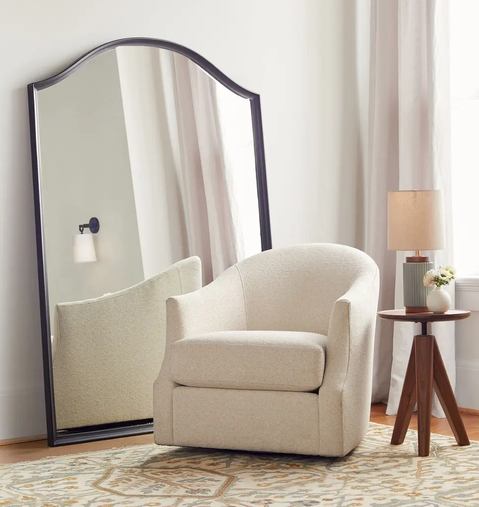 With an elegant silhouette, our Traditional Frame Floor Mirror makes a statement in any room. Featuring a curved top and detailed frame in our Oil-Rubbed Bronze finish, this timeless style adds the perfect touch to your entryway, mantel, bedroom, or bathroom. Details You'll Appreciate Frame constructed from high quality Solid Brass Finishes coordinate with all our Hardware & Plumbing Product Specifications Can be wall mounted, using a French Cleat system, or leaned against the wall, mounting hardware and anti-tip kit included Premium & durable thick glass mirror, constructed with an anti-shatter backing Backed with MDF, providing extra strength and ensuring the mirror's structural integrity over time Rated for use in bathroom, covered outdoor areas & other areas with high moisture Contract Grade – Designed, Engineered and Tested for commercial use Imported